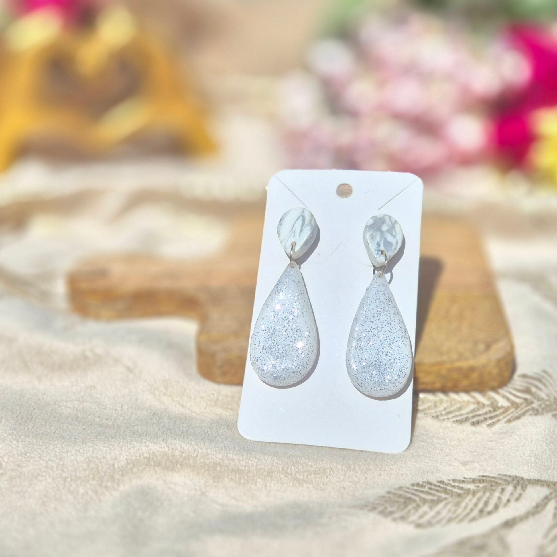 Alliant une base marbrée texturée et des gouttes ivoire incrustées de paillettes argentées, cette création évoque les pierres précieuses sculptées par le temps. Idéale pour sublimer une tenue sobre, Albamara incarne un style à la fois pur, intemporel et envoûtant.