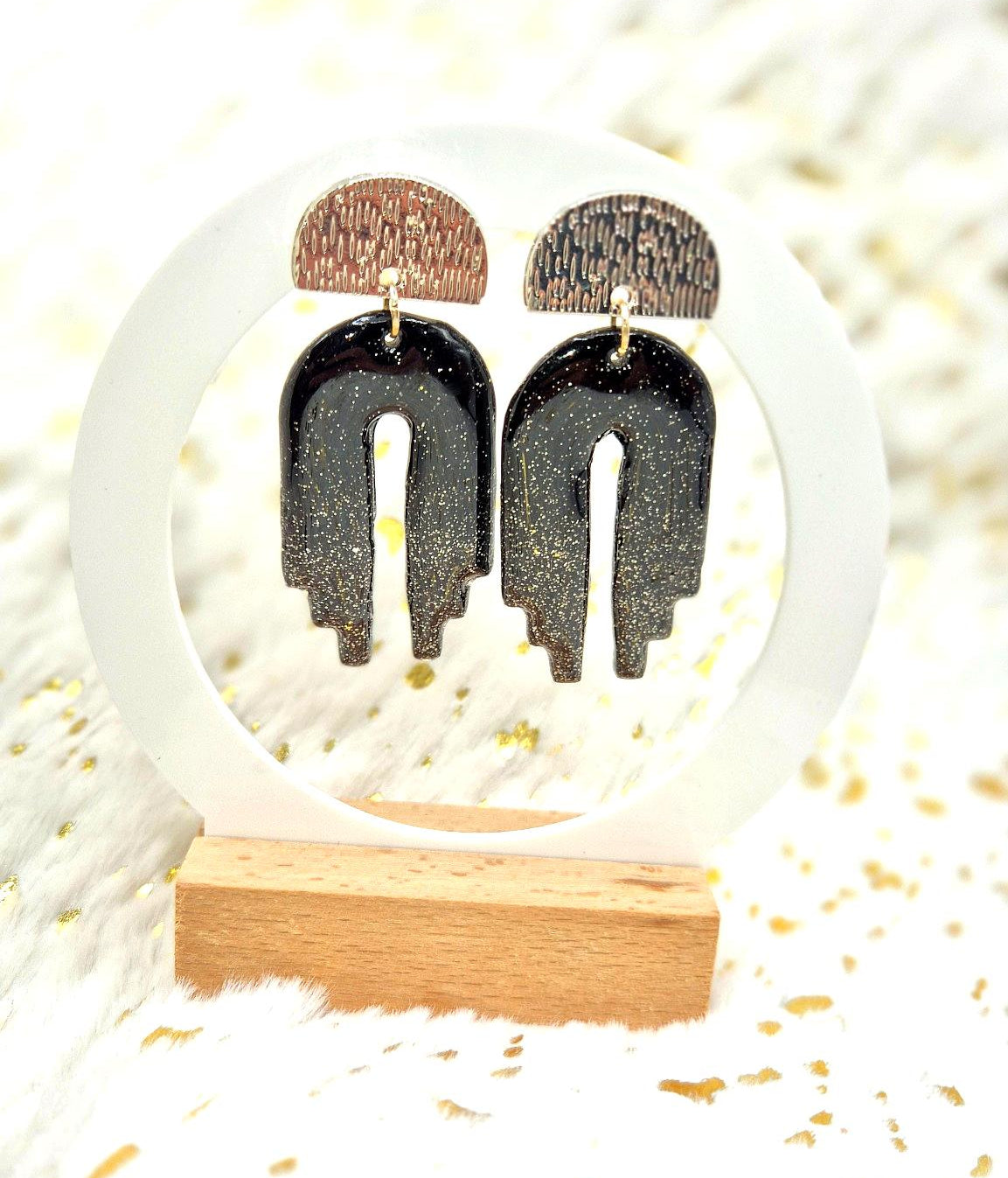 Inspirée des étoiles et sculptée comme une relique moderne, cette paire marie un noir pailleté profond à une attache martelée. Élégante, mystérieuse et résolument graphique, Astéria apporte une touche galactique à vos looks les plus audacieux.