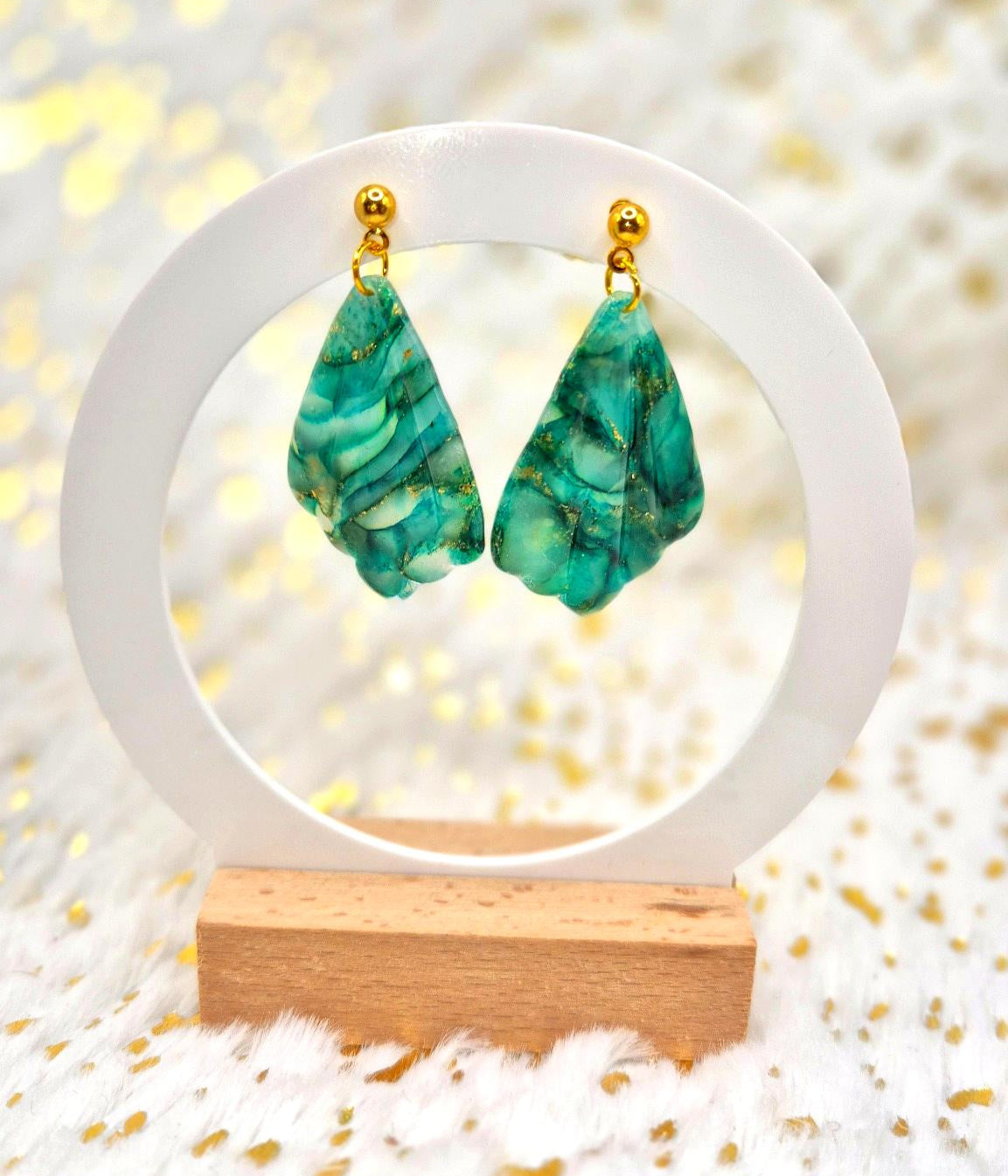 Une harmonie entre feuille précieuse et lumière naturelle. Les boucles Aurélys jouent avec les transparences vert d’eau et des éclats dorés pour un style aérien et raffiné.