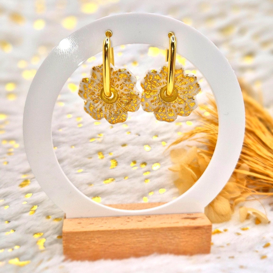 Pétillantes et solaires, les pampilles Bloomies se fixent à vos créoles pour faire éclore un look floral tout en lumière. Leur texture fleurie et leur finition dorée accrochent la lumière à chaque mouvement. Idéales pour apporter une touche d’élégance espiègle à vos tenues estivales.