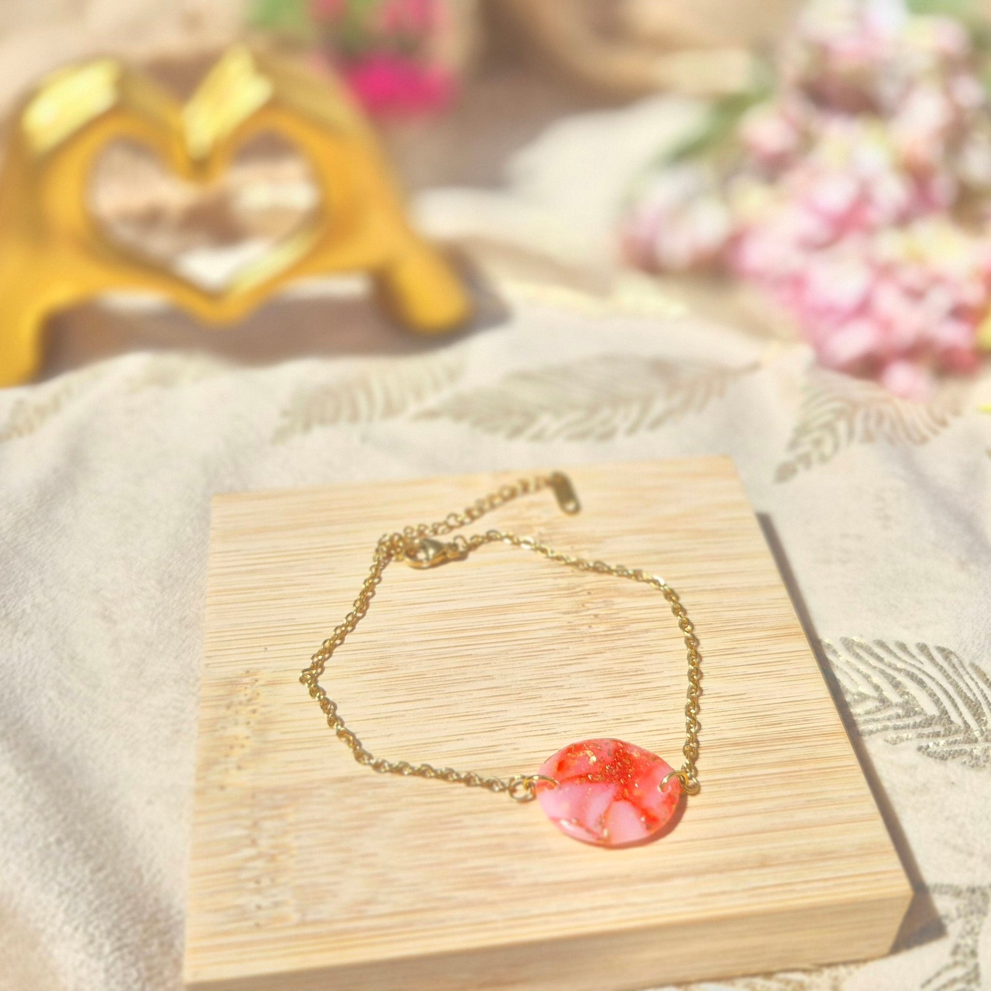Un éclat de soleil sur votre poignet : le bracelet Coralza marie à merveille un corail tendre et des touches dorées étincelantes, pour une allure à la fois fraîche, féminine et solaire. Idéal pour sublimer un look estival, romantique ou raffiné.