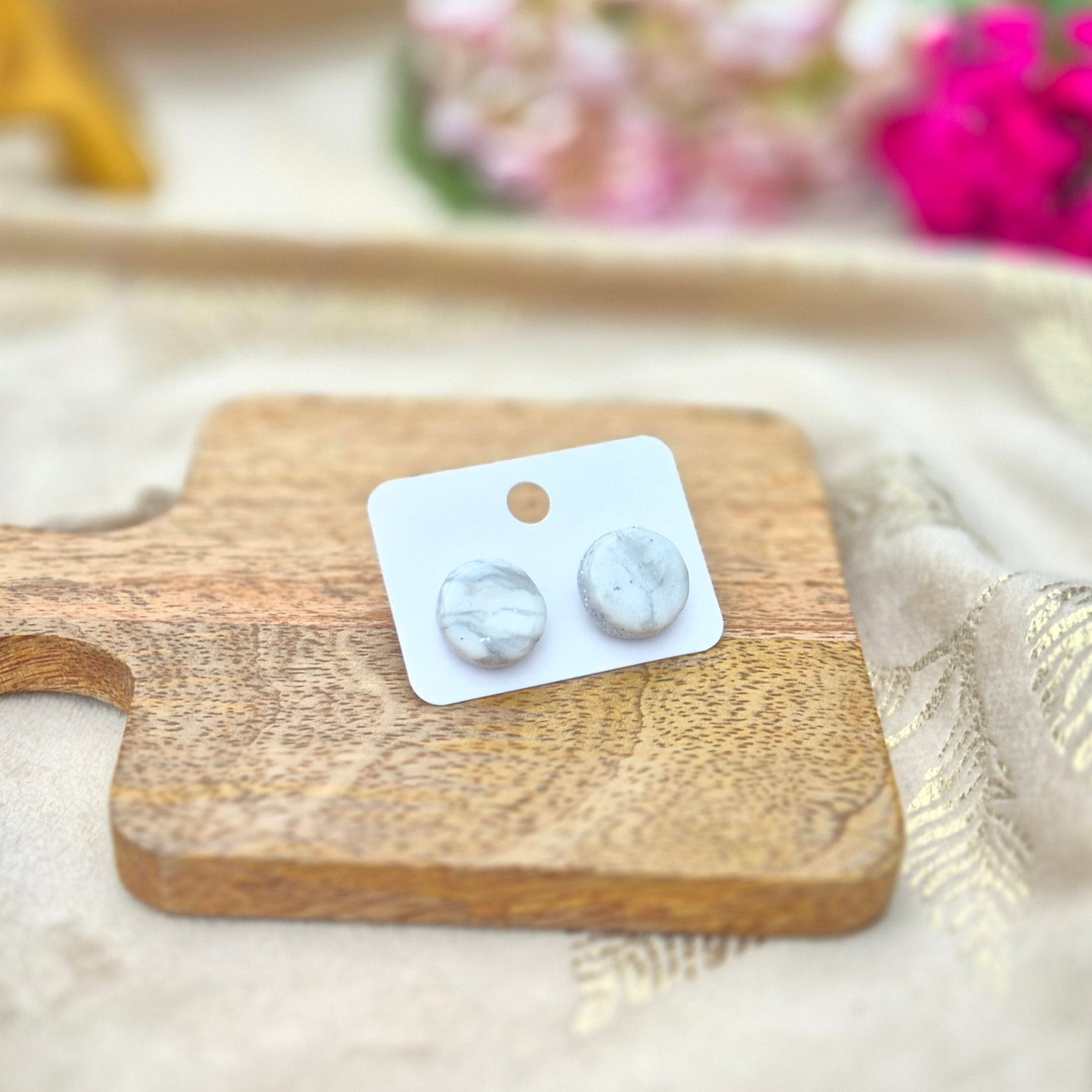 Un minimalisme raffiné pour un style chic au naturel. Ces puces marbrées évoquent la douceur de la céramique blanche, rehaussée de subtils reflets pierreux. Parfaites pour un look épuré et moderne.
