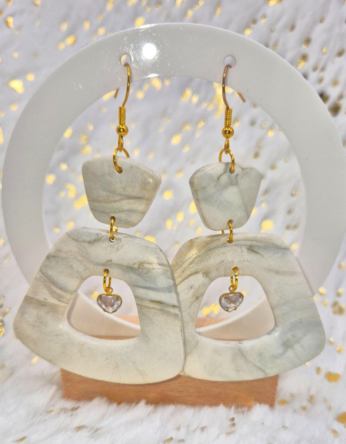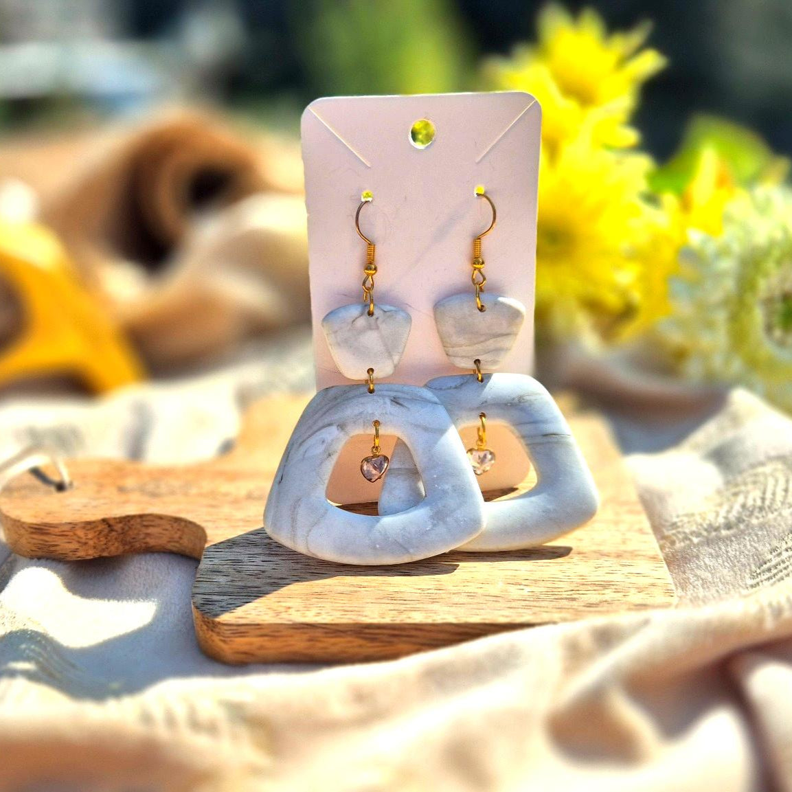 Un charme minéral et intemporel se dégage de cette paire marbrée aux reflets nacrés, sublimée par un petit cœur en pendentif. Parfaite pour un look chic naturel, elle se porte aussi bien au quotidien qu’en soirée.