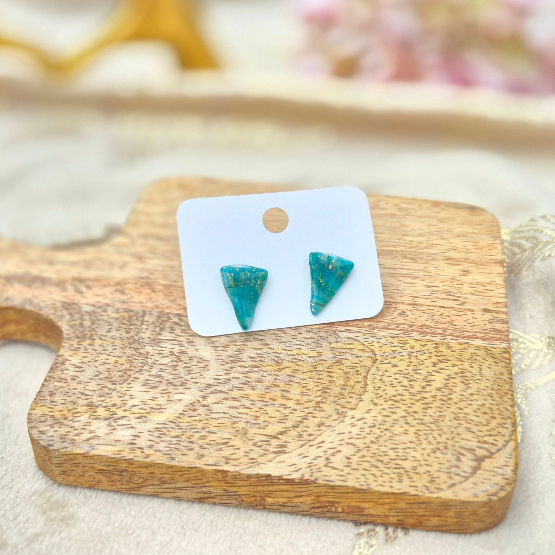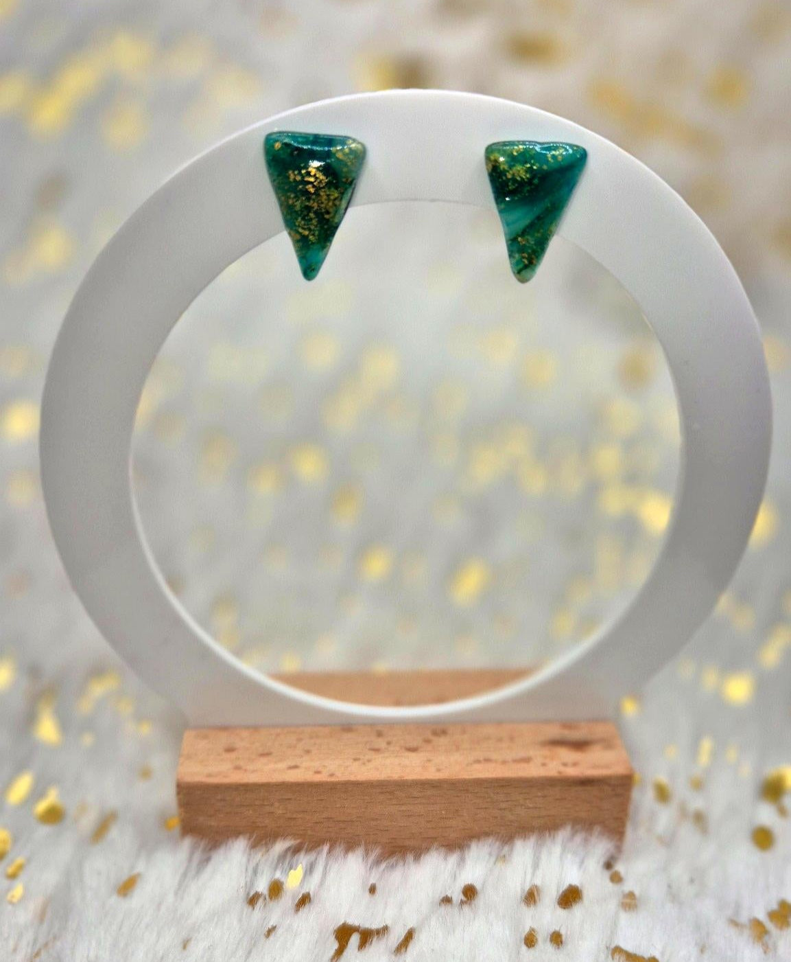 Cristal d’Île capture la beauté brute d’un lagon secret : une pierre verte précieuse traversée de lumière dorée, taillée en triangle pour une allure audacieuse et envoûtante.
