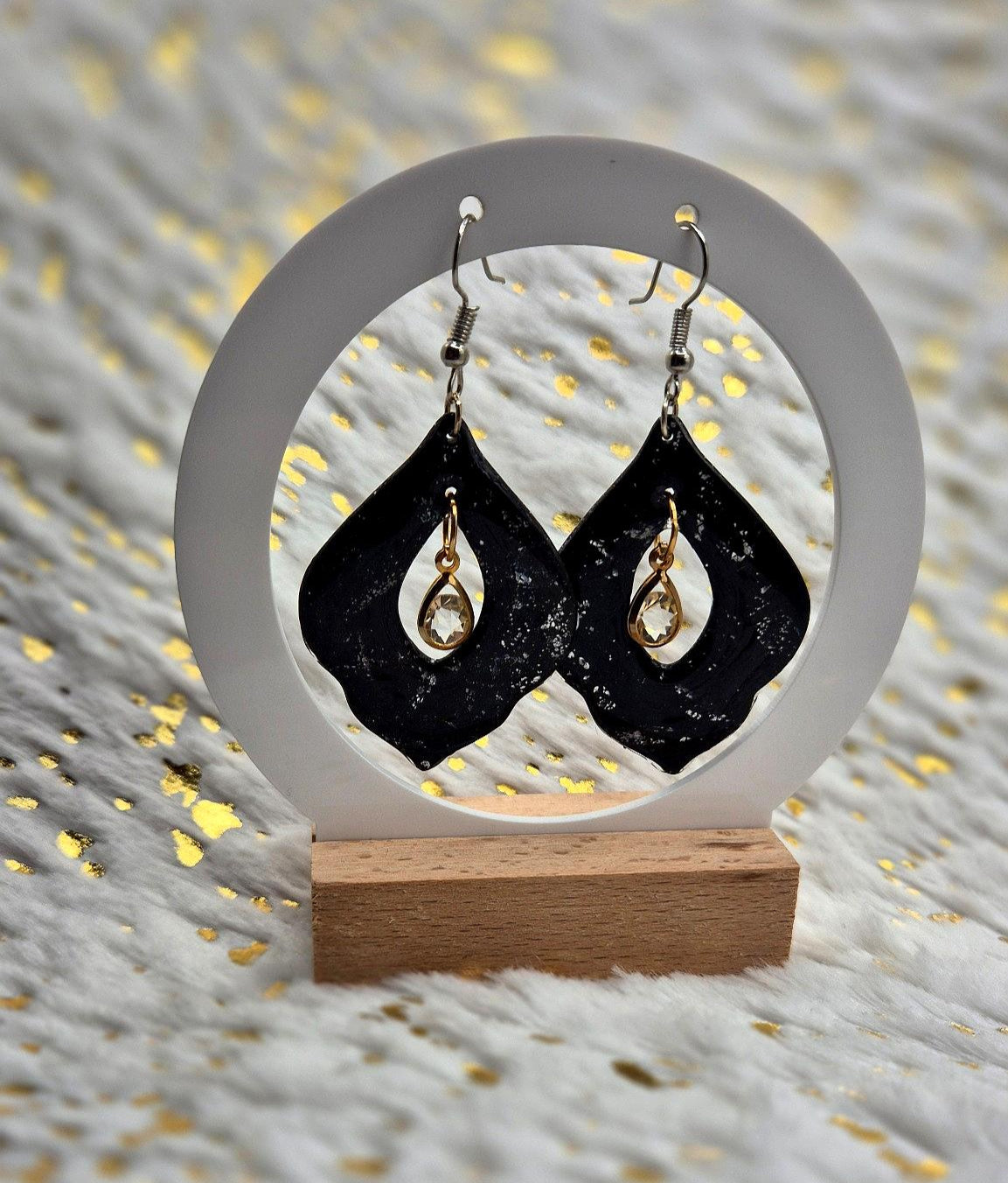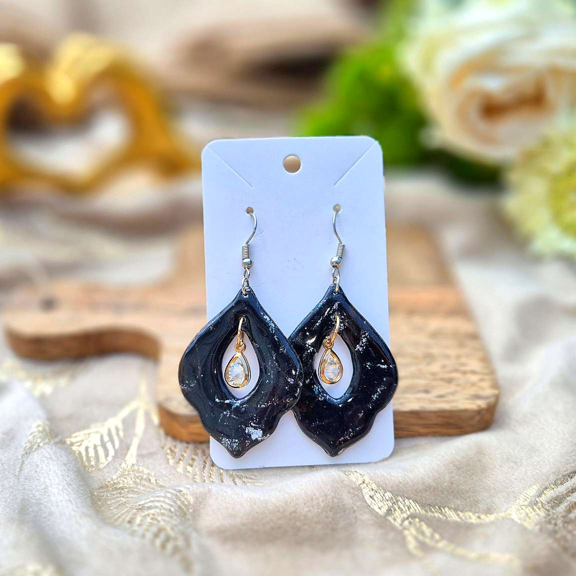 Leur forme organique évoque un pétale galactique, tandis que la goutte cristalline suspendue reflète la lumière à chaque mouvement.