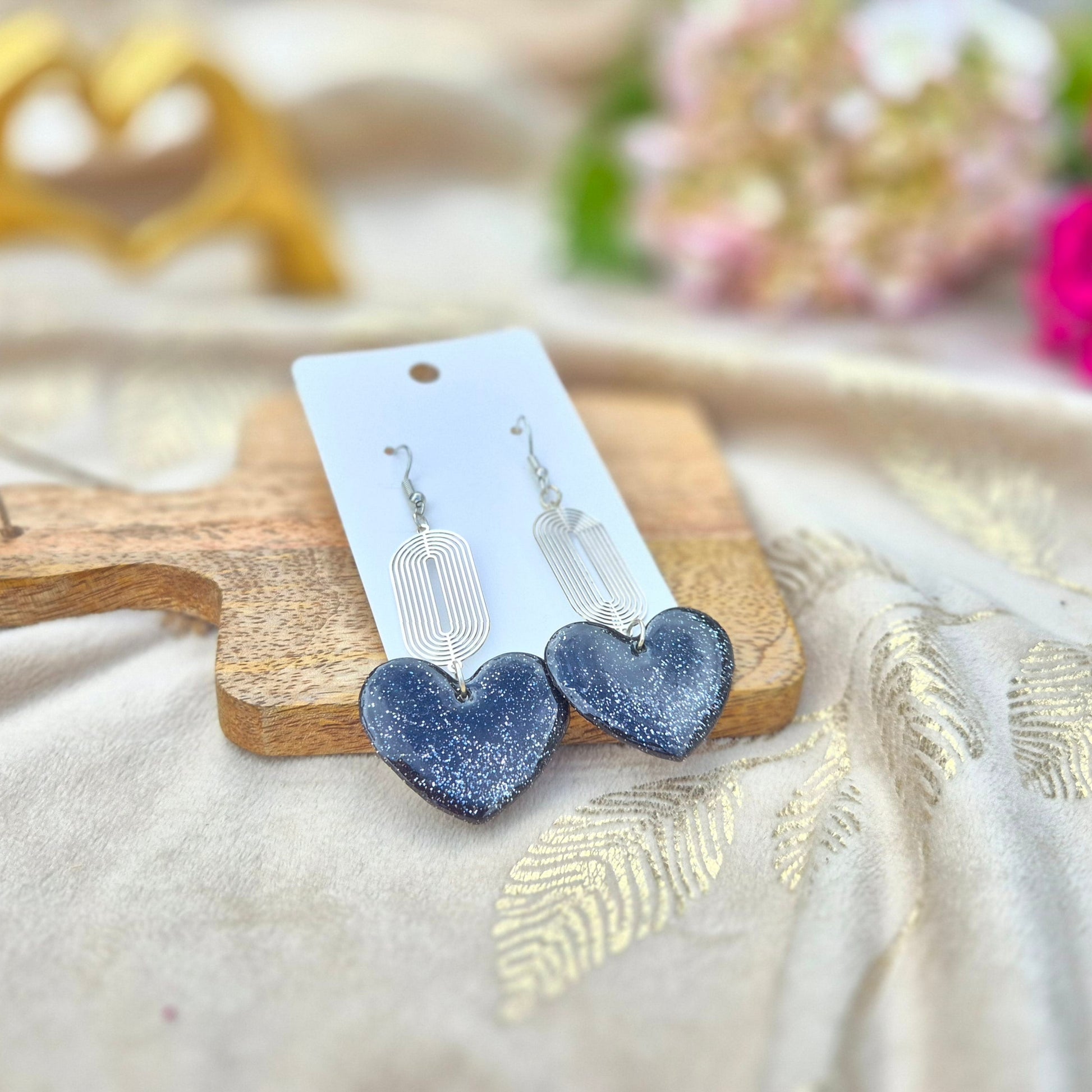 GalaxyHeart associe un cœur noir pailleté, évoquant l’infini des étoiles, à un connecteur géométrique argenté, pour un bijou chic et cosmique.