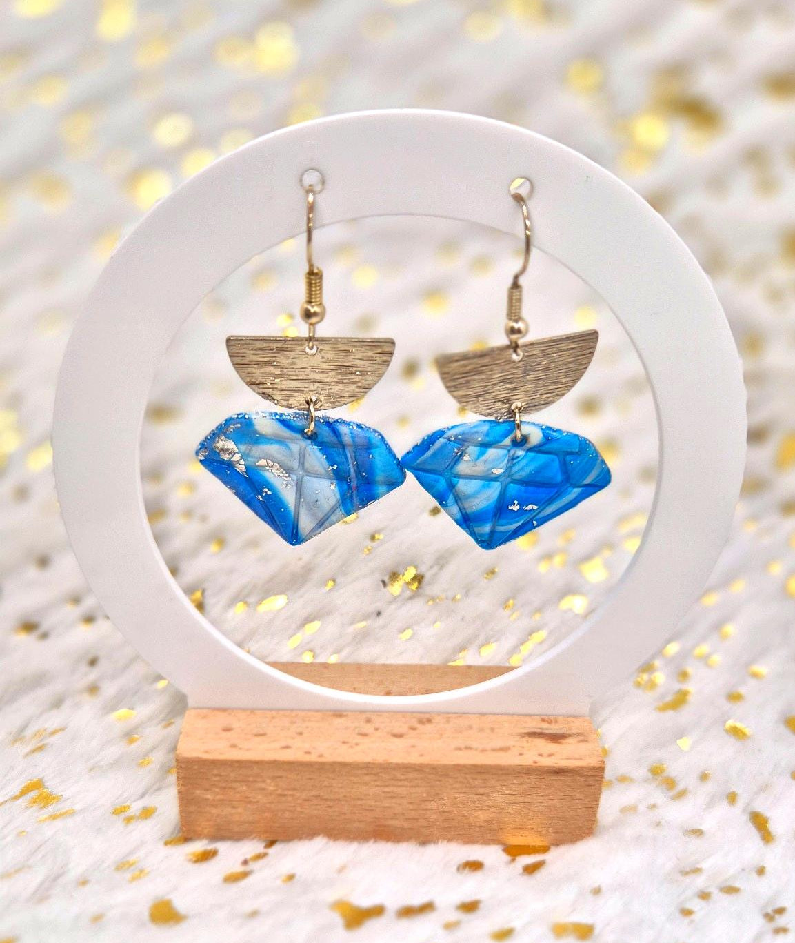 Une gemme suspendue entre ciel et mer. Les boucles Gemmaé mêlent la brillance d’un bleu taillé à la main et l’élégance d’une attache dorée demi-lune. Elles s’associent à merveille à un look minimal chic ou à une silhouette plus affirmée pour un effet bijou statement.
