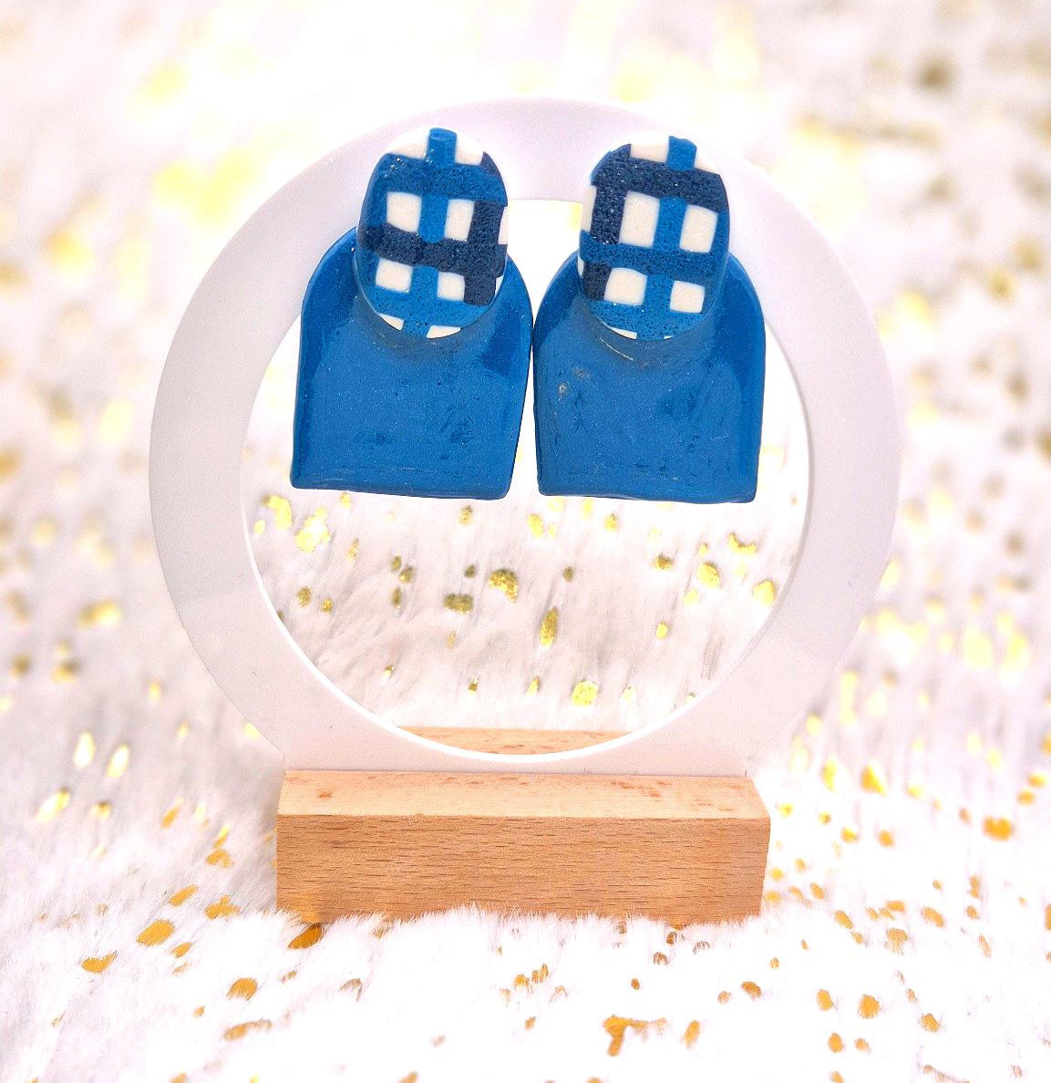 - Finition : base bleu mat lisse surmontée d’un motif tissé blanc et bleu - Résine pour un rendu brillant et robuste