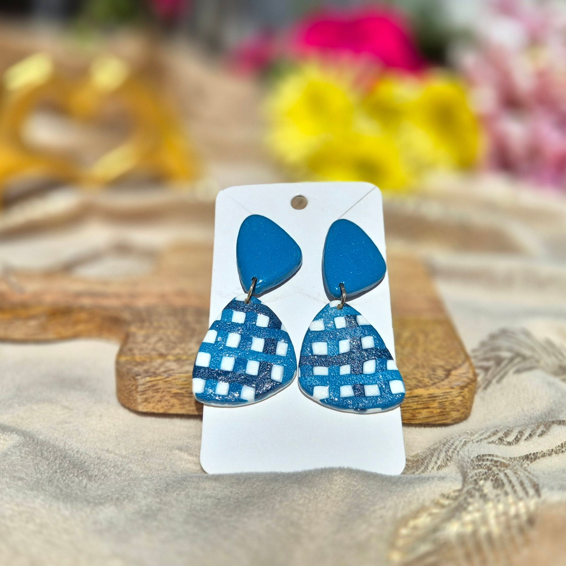 Une silhouette graphique tout en douceur : Goutte Tressée allie la pureté d’un bleu profond à un motif quadrillé artisanal. Un bijou structuré et élégant, parfait pour sublimer vos tenues du quotidien ou une touche plus habillée.