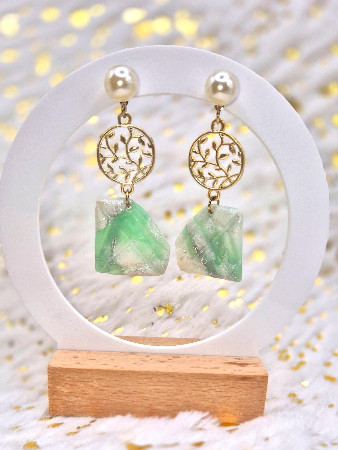Une pierre verte adoucie par un feuillage argenté. Les boucles Jadaé marient le raffinement d’une forme taillée à la main et la douceur d’un vert jade nacré. Elles subliment les looks romantiques, bohèmes ou minimalistes avec une touche végétale chic.