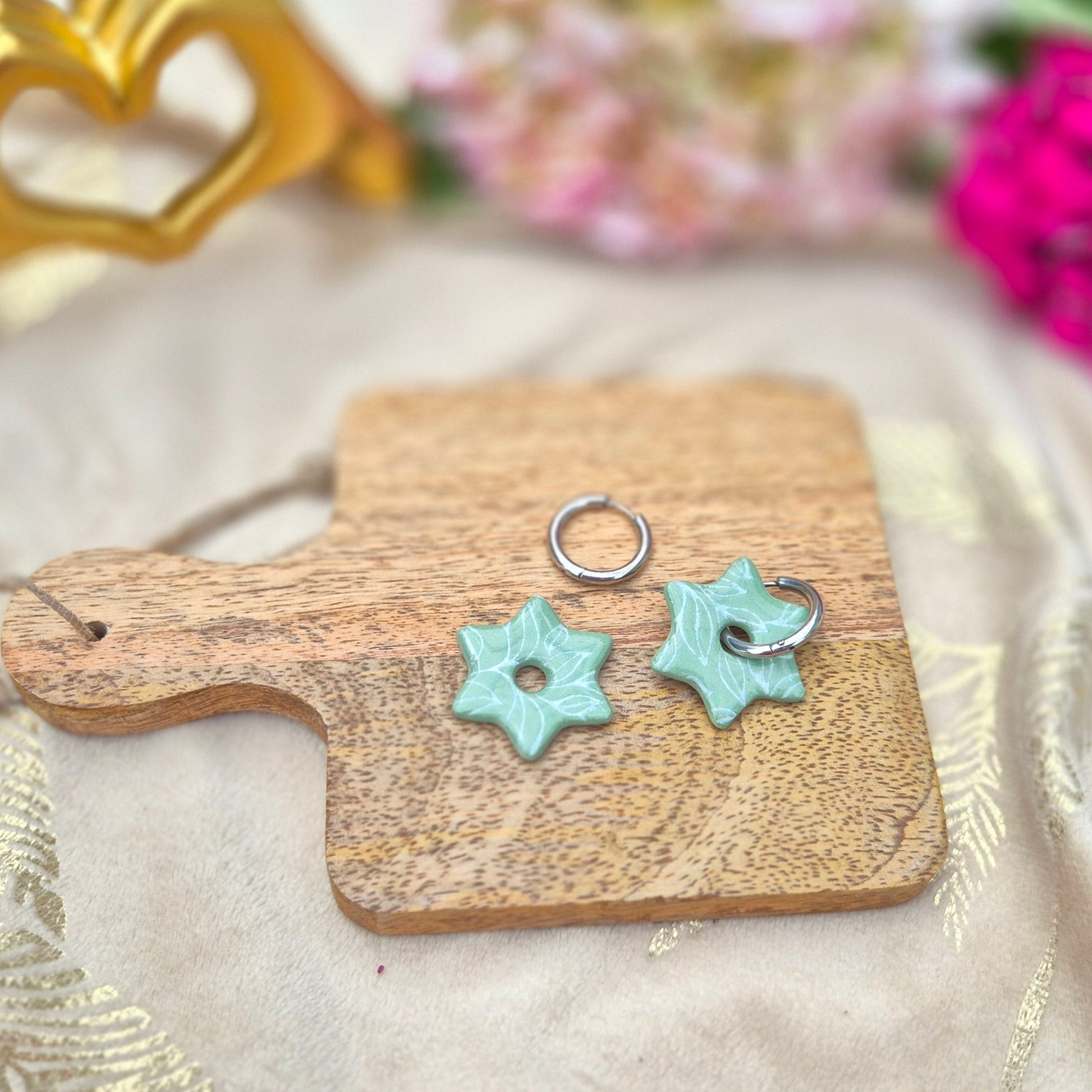 Un vent de fraîcheur souffle sur vos oreilles avec Leafy Loop : une paire de pampilles en forme d'étoiles graphique, à la fois douce et affirmée. Son vert tendre et ses lignes végétales évoquent la nature chic, parfaite pour un style casual botanique ou un look bohème stylisé.