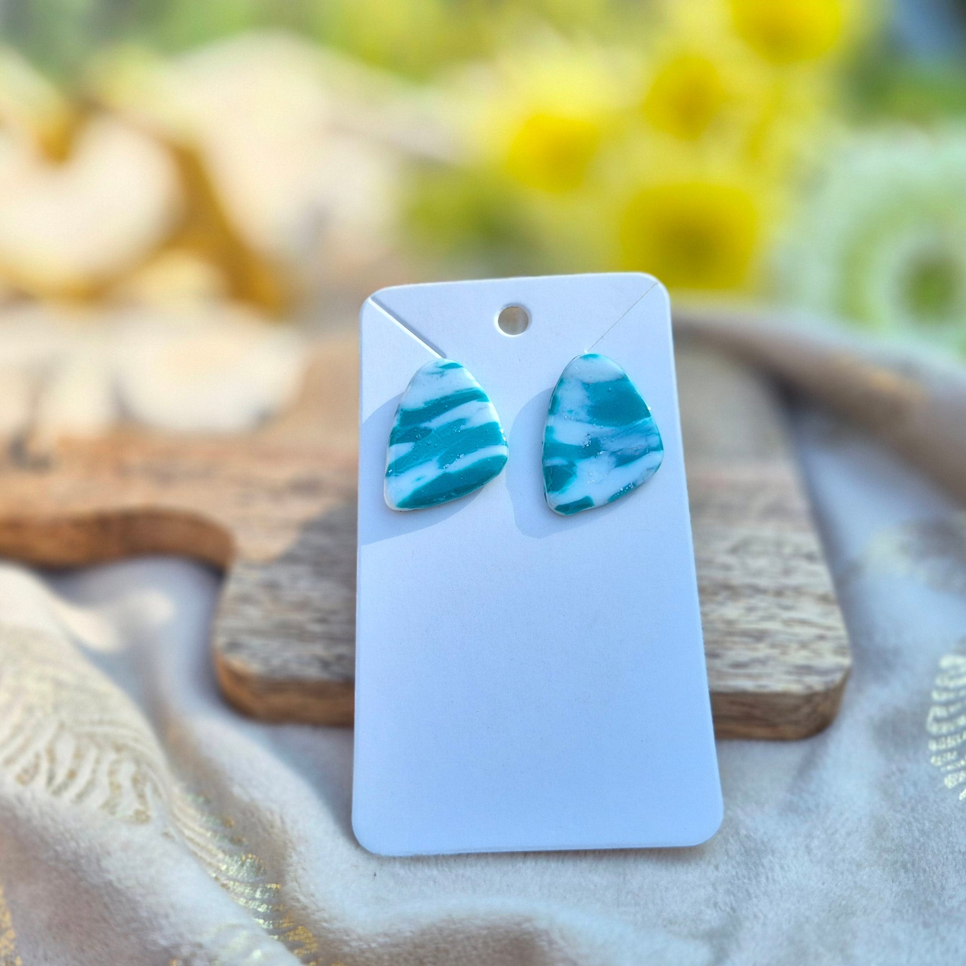 Ces boucles aux nuances vert menthe marbrées de blanc capturent la vivacité d’une mer calme. Un design asymétrique et une forme angulaire organique pour une touche moderne et affirmée.
