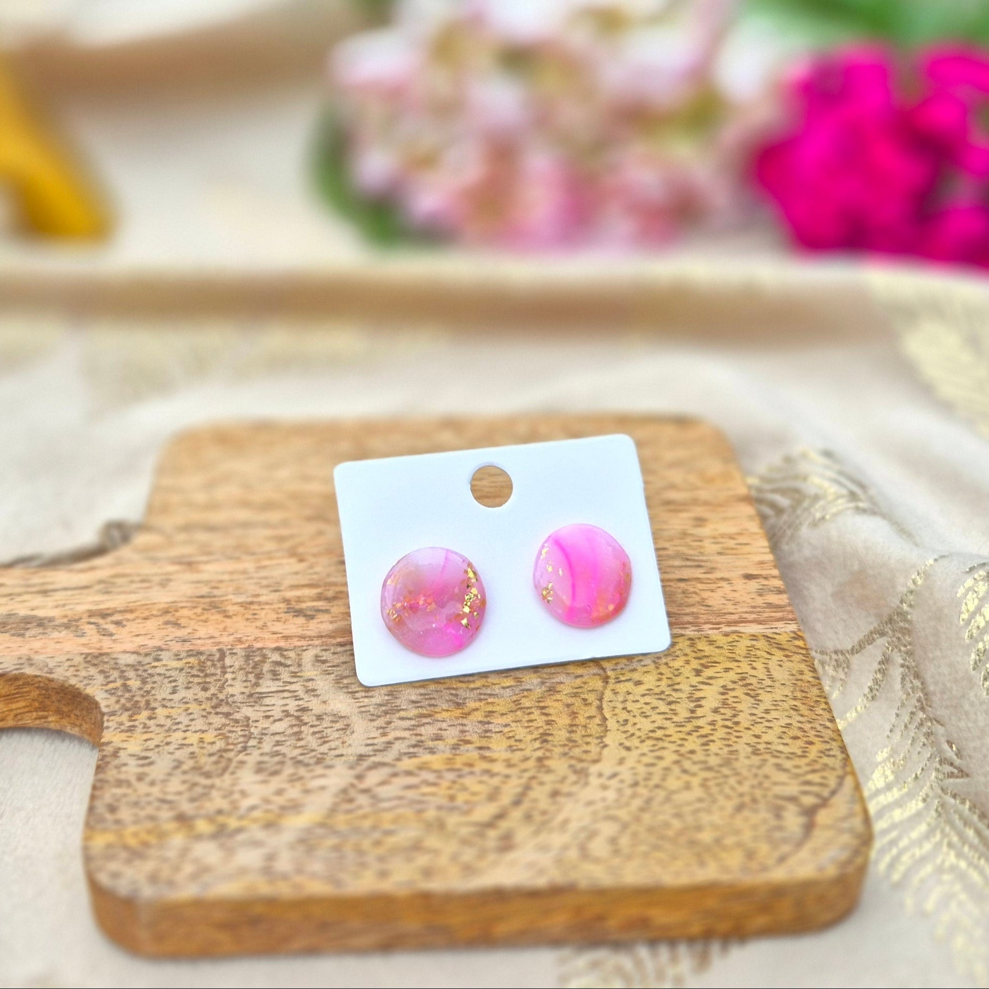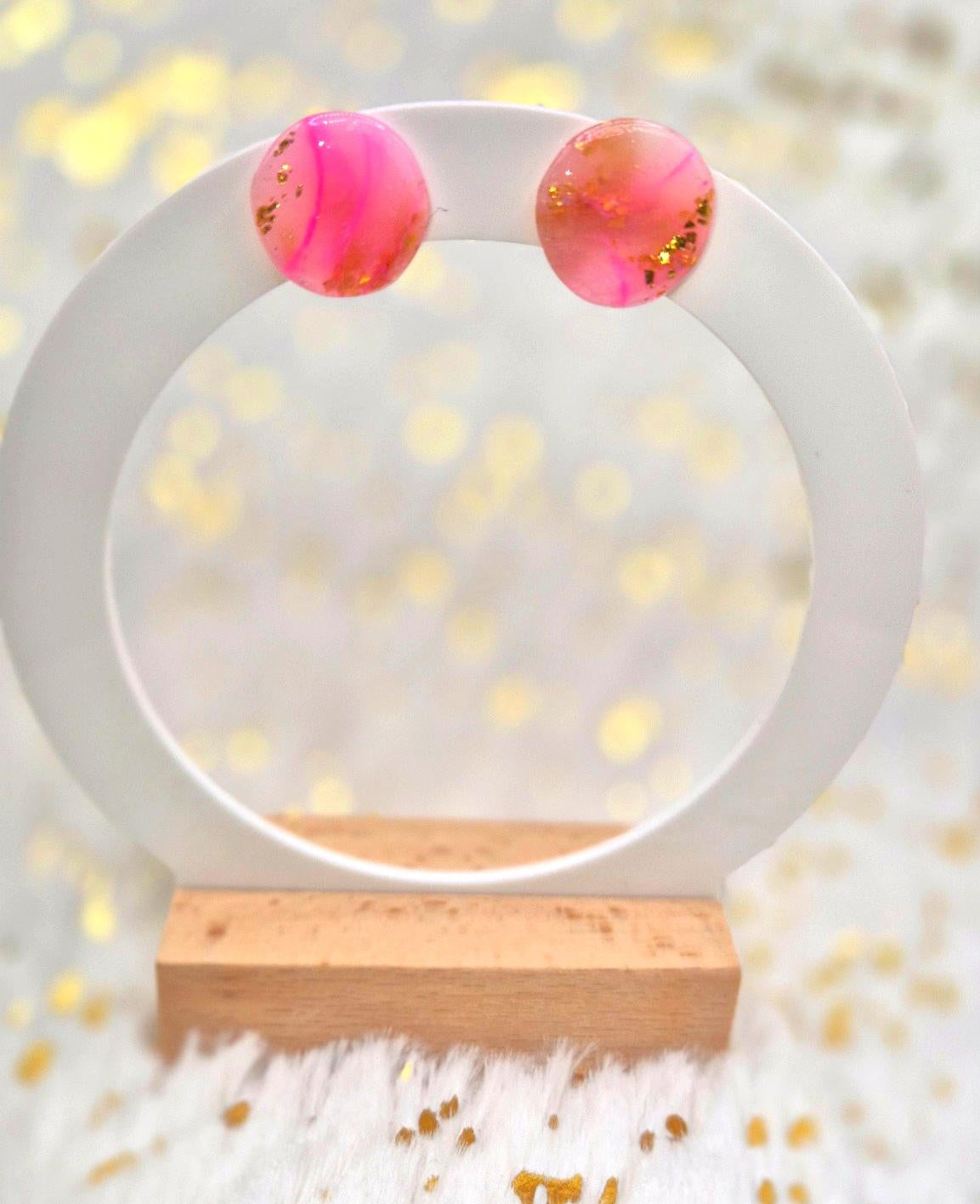 Mira dévoile des puces rondes rose lumineux translucides rehaussées de touches dorées pour un look délicat et raffiné.