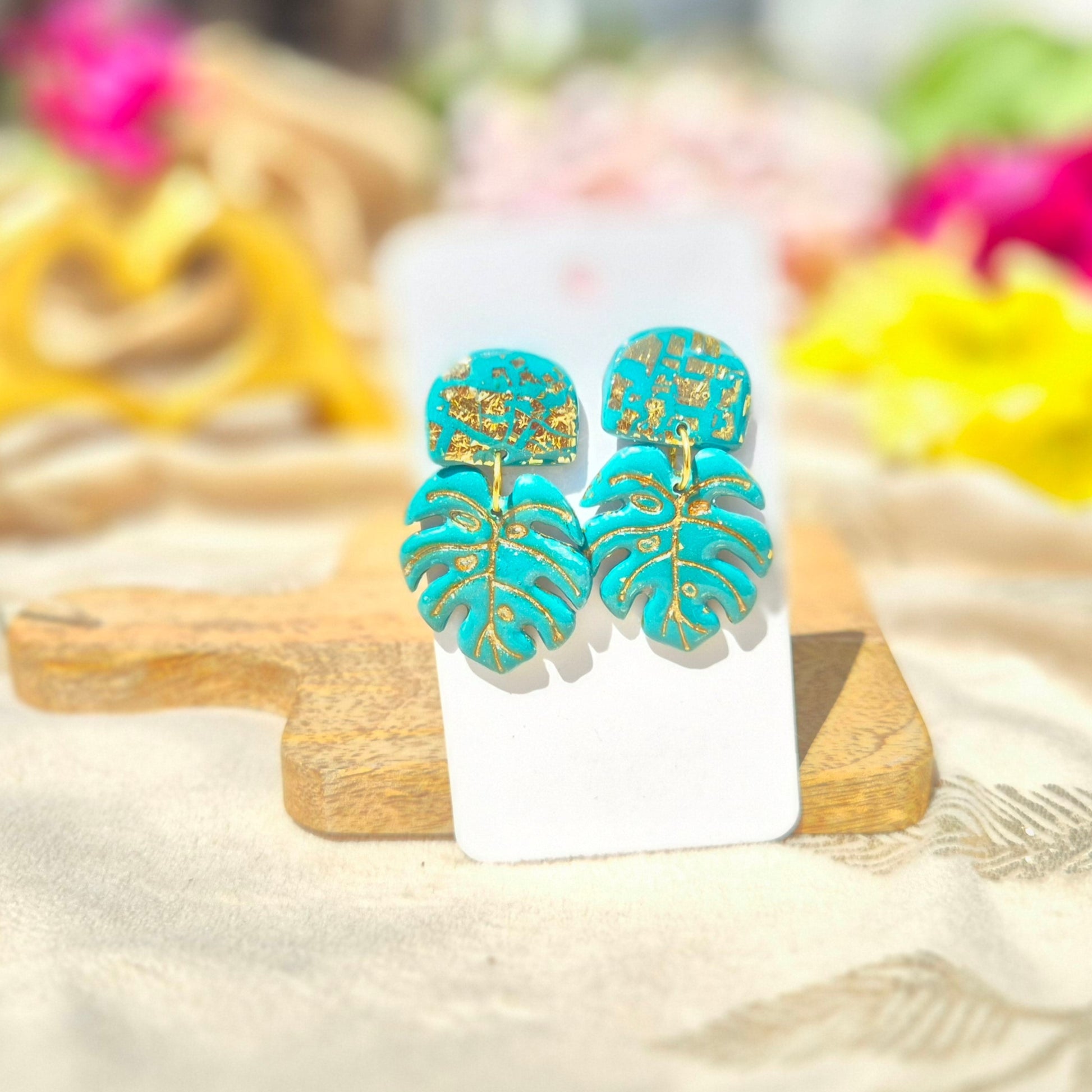 Une touche tropicale luxueuse : Monstera Royale dévoile un feuillage sculpté d’un bleu/vert profond, rehaussé d’éclats dorés. Sa forme iconique de feuille de monstera et sa finition brillante évoquent l’exotisme chic d’un jardin royal. Parfaites pour sublimer un style bohème élégant ou une tenue estivale sophistiquée.