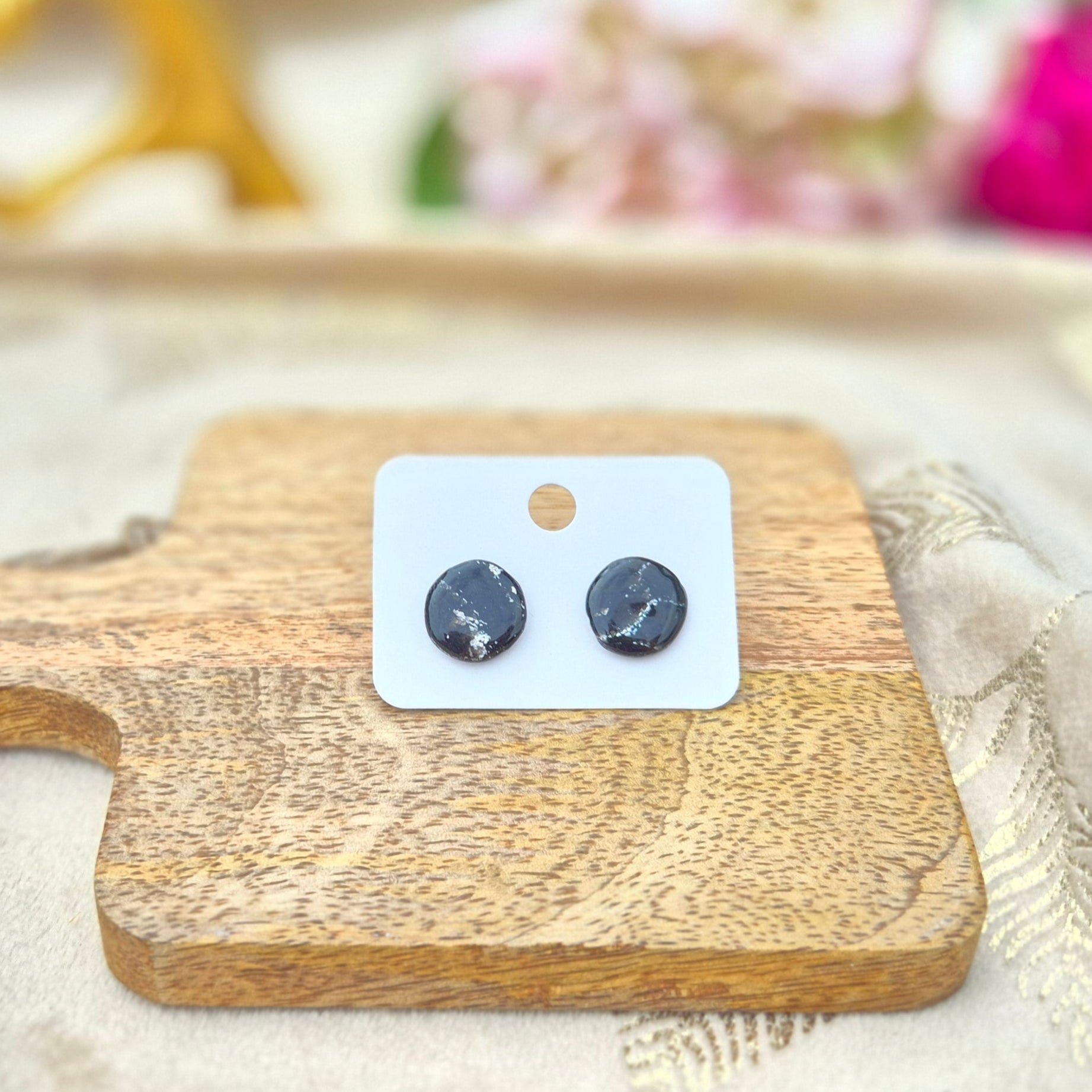 - Attaches et apprêts : puces d’oreilles argentées en acier inoxydable