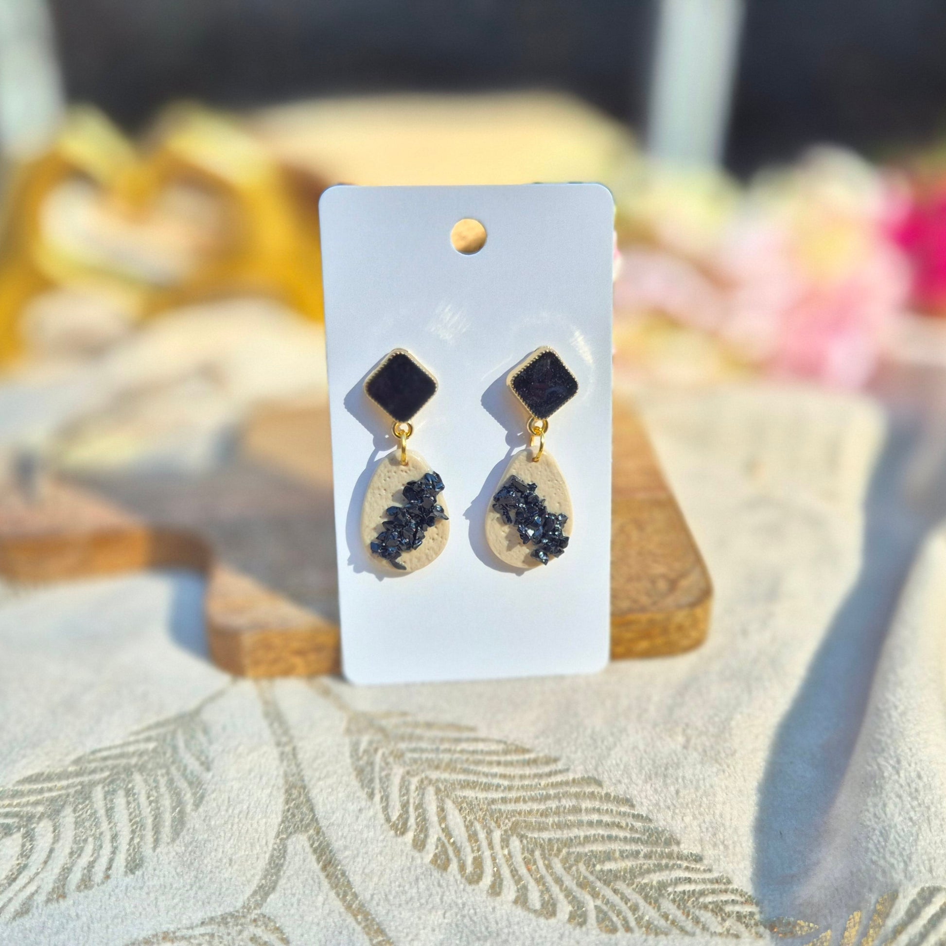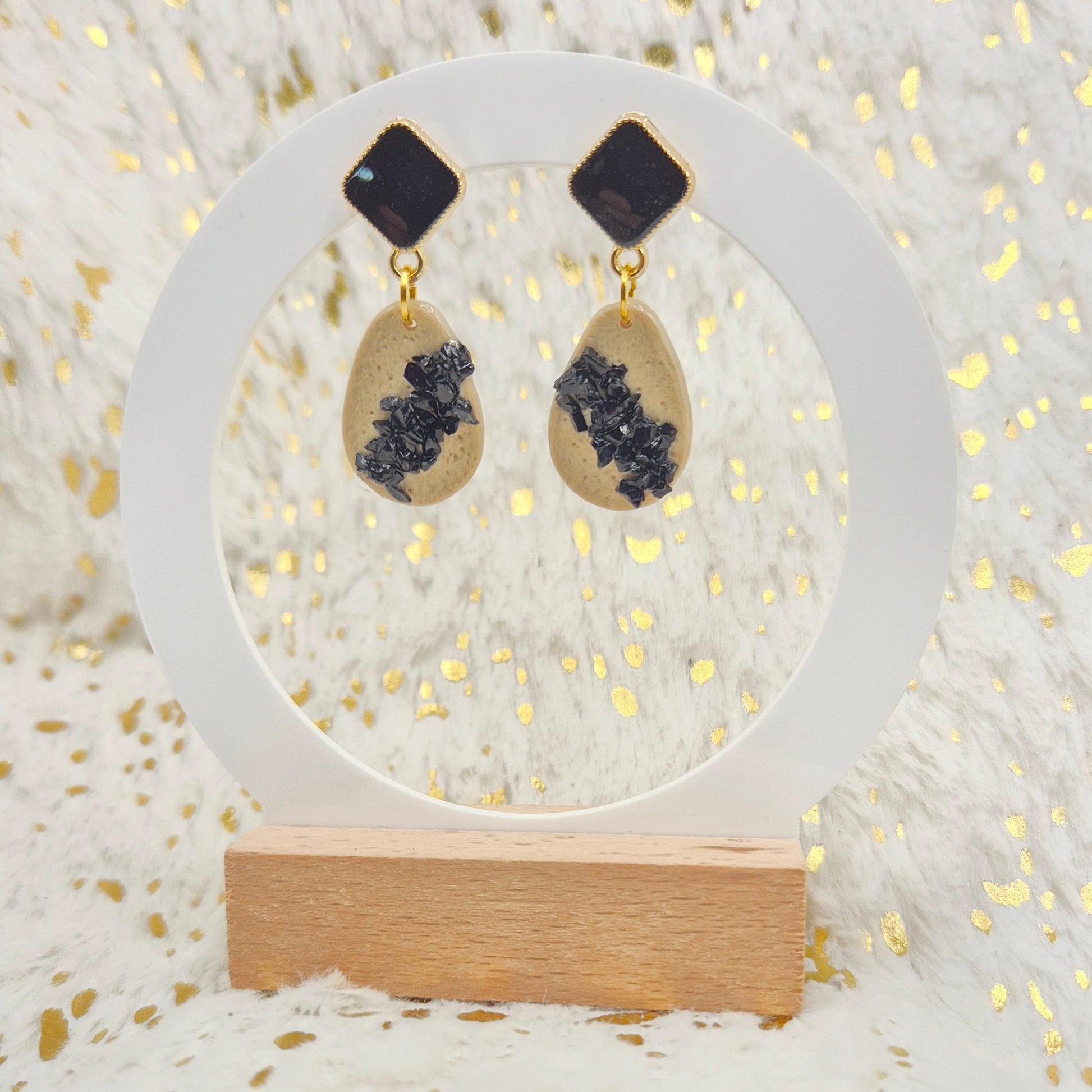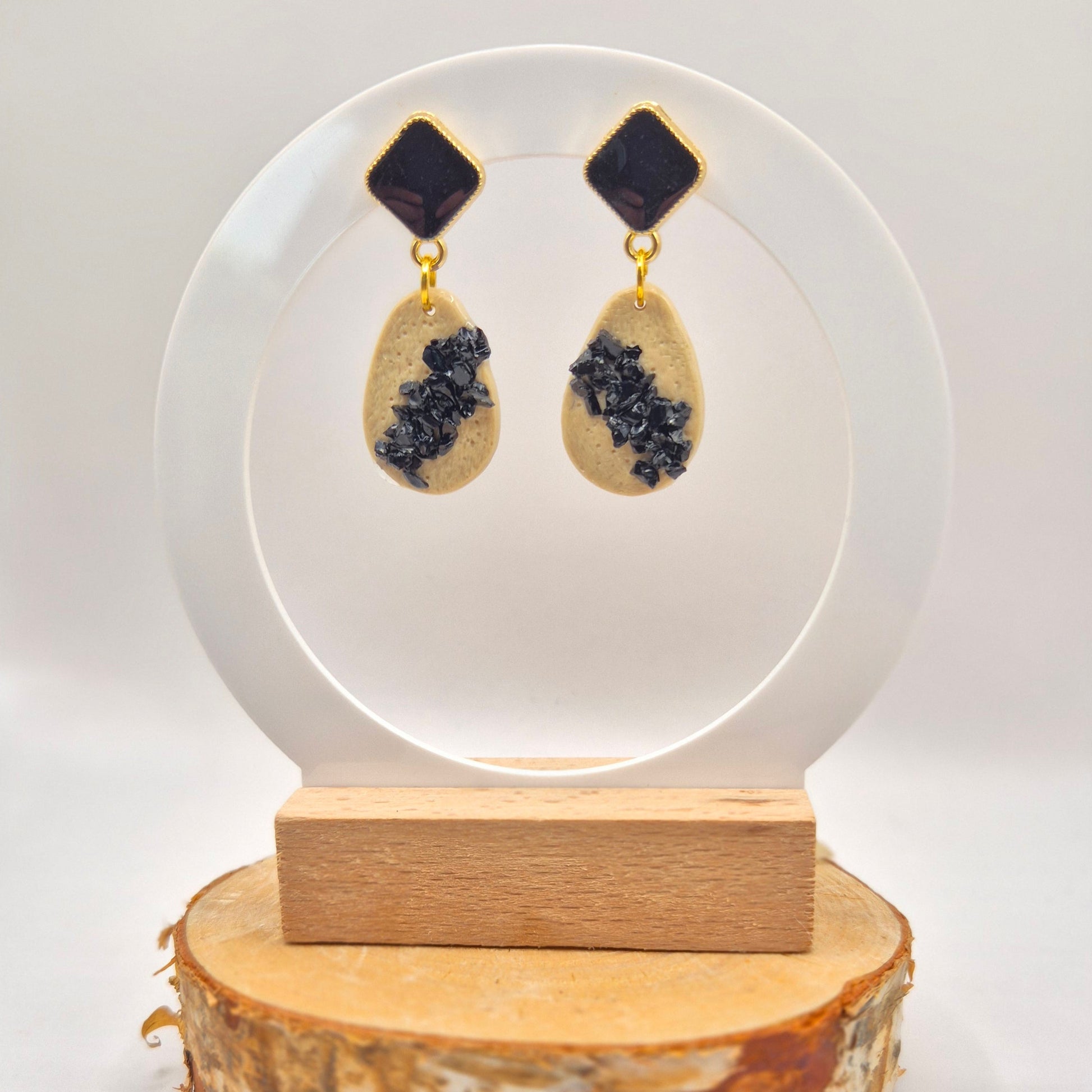 La petite sœur d'Obsidia… et elle ne manque pas de caractère. Les boucles Obsidette reprennent la signature contrastée de la collection : cristaux noirs bruts sur fond crème texturé, dans un format plus compact. Idéales pour un style affirmé, chic et léger, version Tropicool minérale.