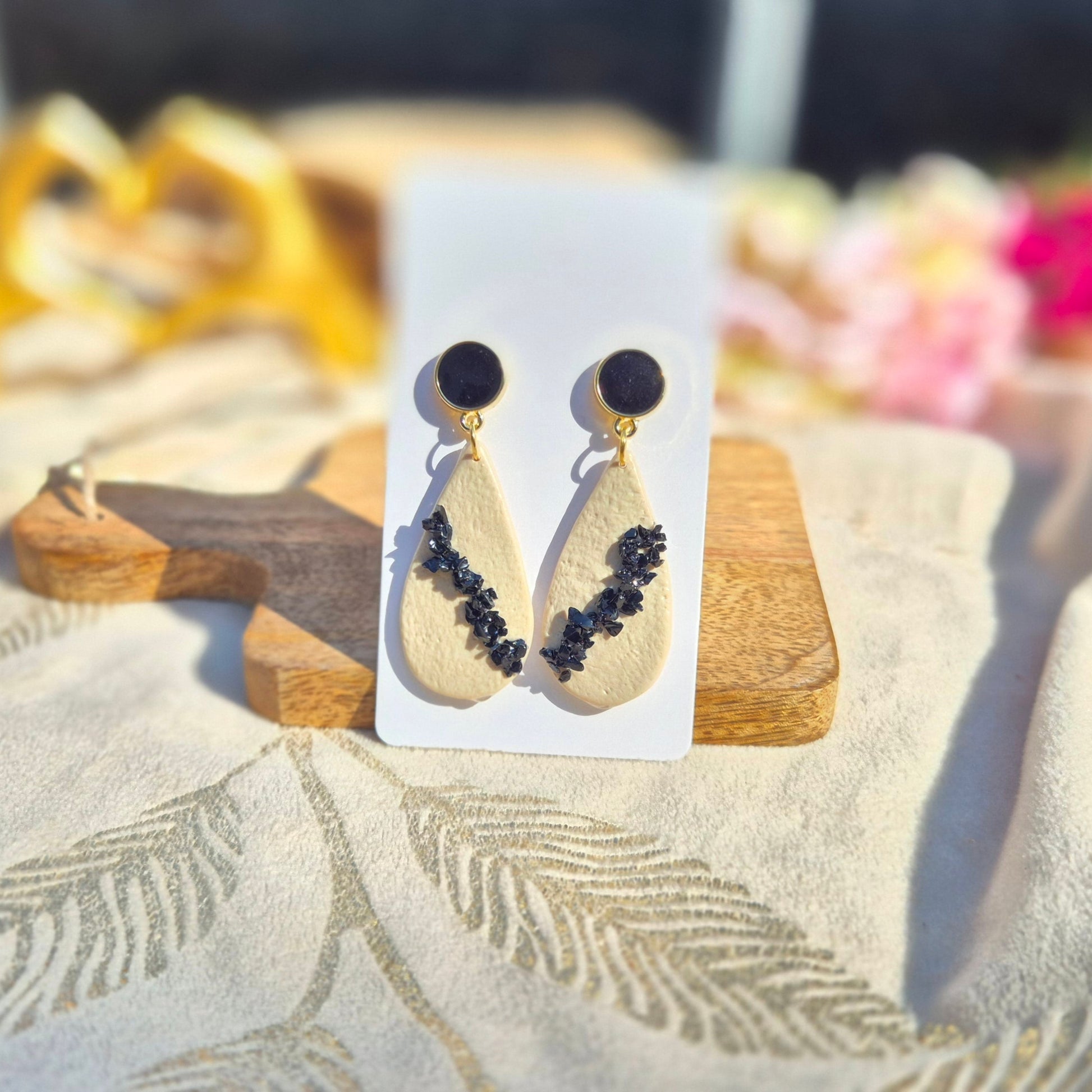 Inspirées de la pierre volcanique du même nom, les boucles Obsidia jouent le contraste entre la douceur sable et l’intensité des cristaux noirs. Une goutte élancée, une ligne brute, un éclat puissant : cette création Tropicool incarne la beauté sauvage et sophistiquée.