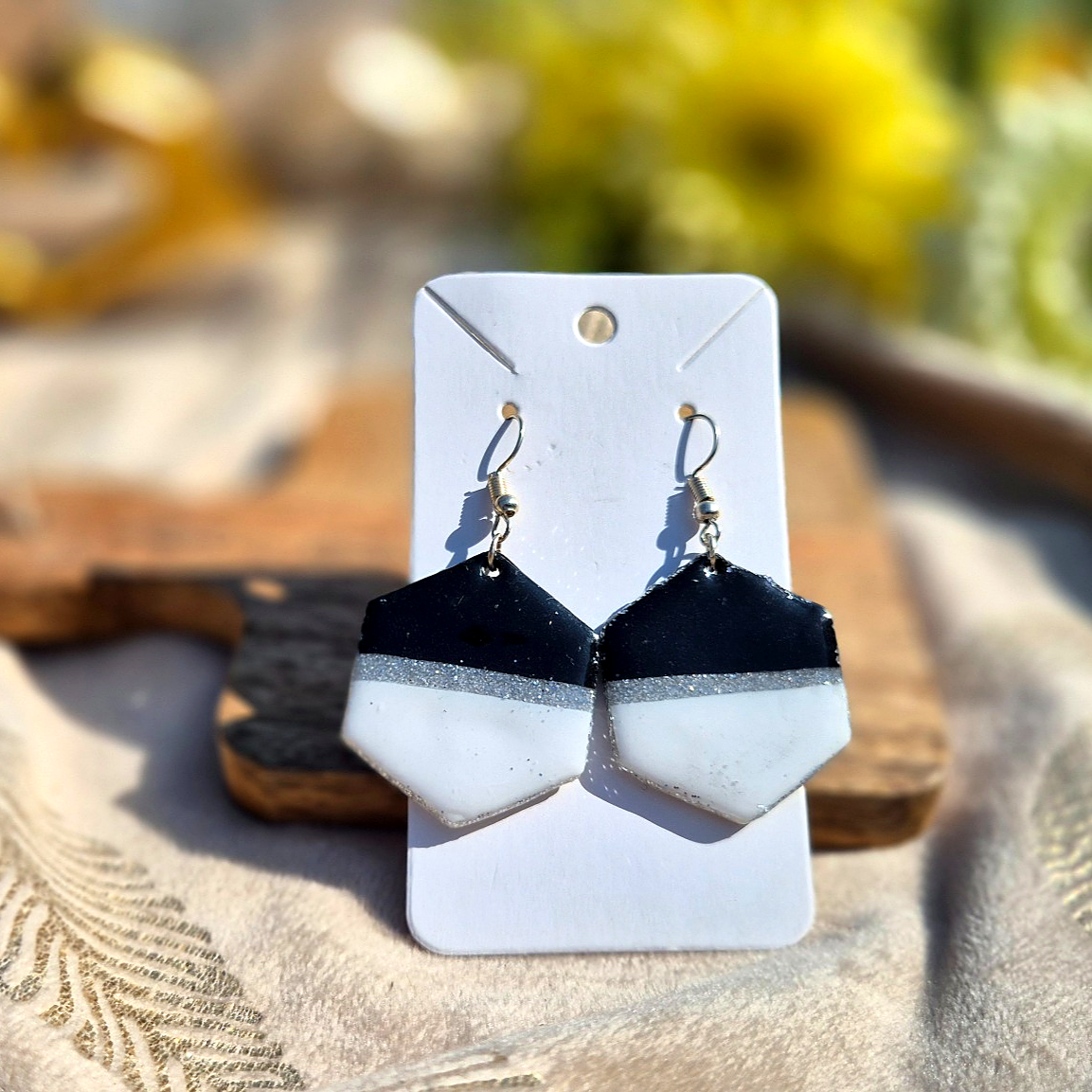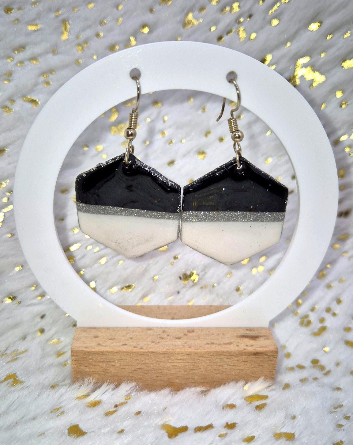 Une silhouette graphique qui joue la carte du contraste. Les boucles Oréline allient un duo noir/blanc tranché à une ligne argentée centrale, dans une forme géométrique pleine de caractère. À porter avec un look épuré, moderne ou monochrome pour un effet couture garanti.
