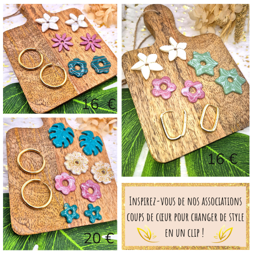 - Attaches et apprêts : créoles interchangeables en acier inoxydable