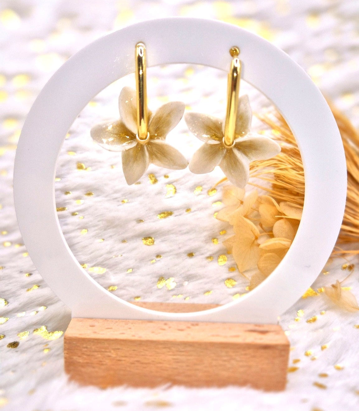 Les pampilles Tahiti Twist sont inspirées des fleurs de monoï, avec leurs courbes douces et leur esprit solaire. À enfiler sur nos créoles interchangeables pour composer ton bijou parfait aux vibes tropicales.