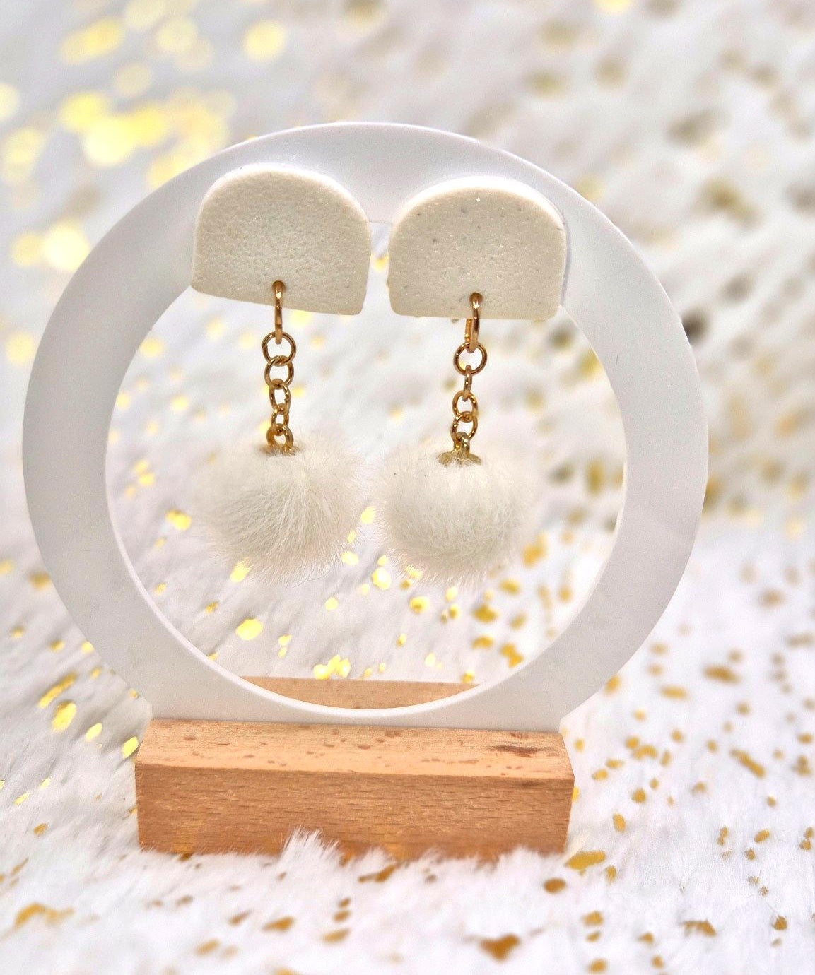 Un souffle de douceur suspendu. Avec sa base ivoire mate texturé, sa chaînette dorée et son pompon duveteux, Pomponia est une goutte d’hiver à porter comme un charme. Ultra légère et délicatement originale, elle allie cocooning et élégance.