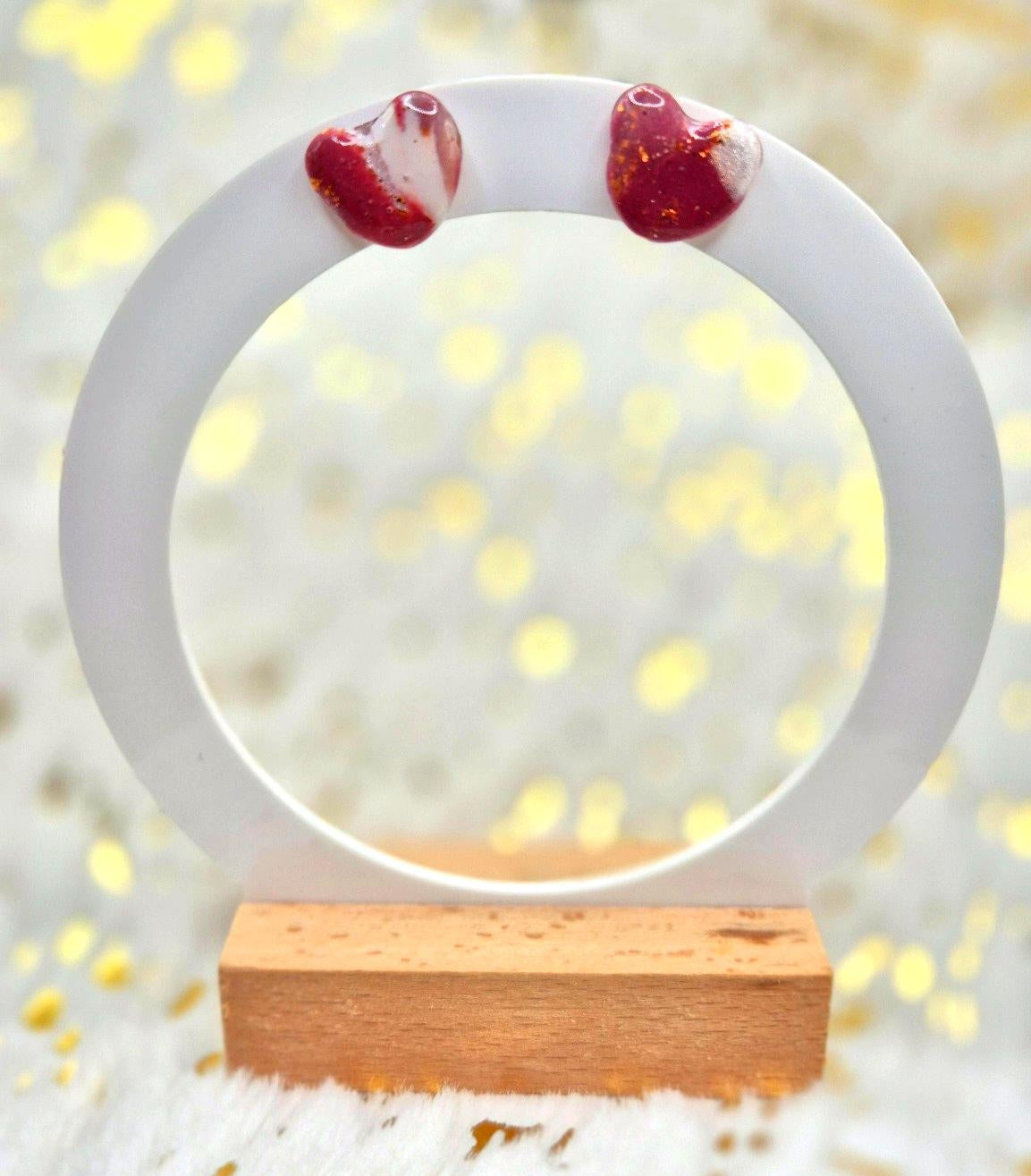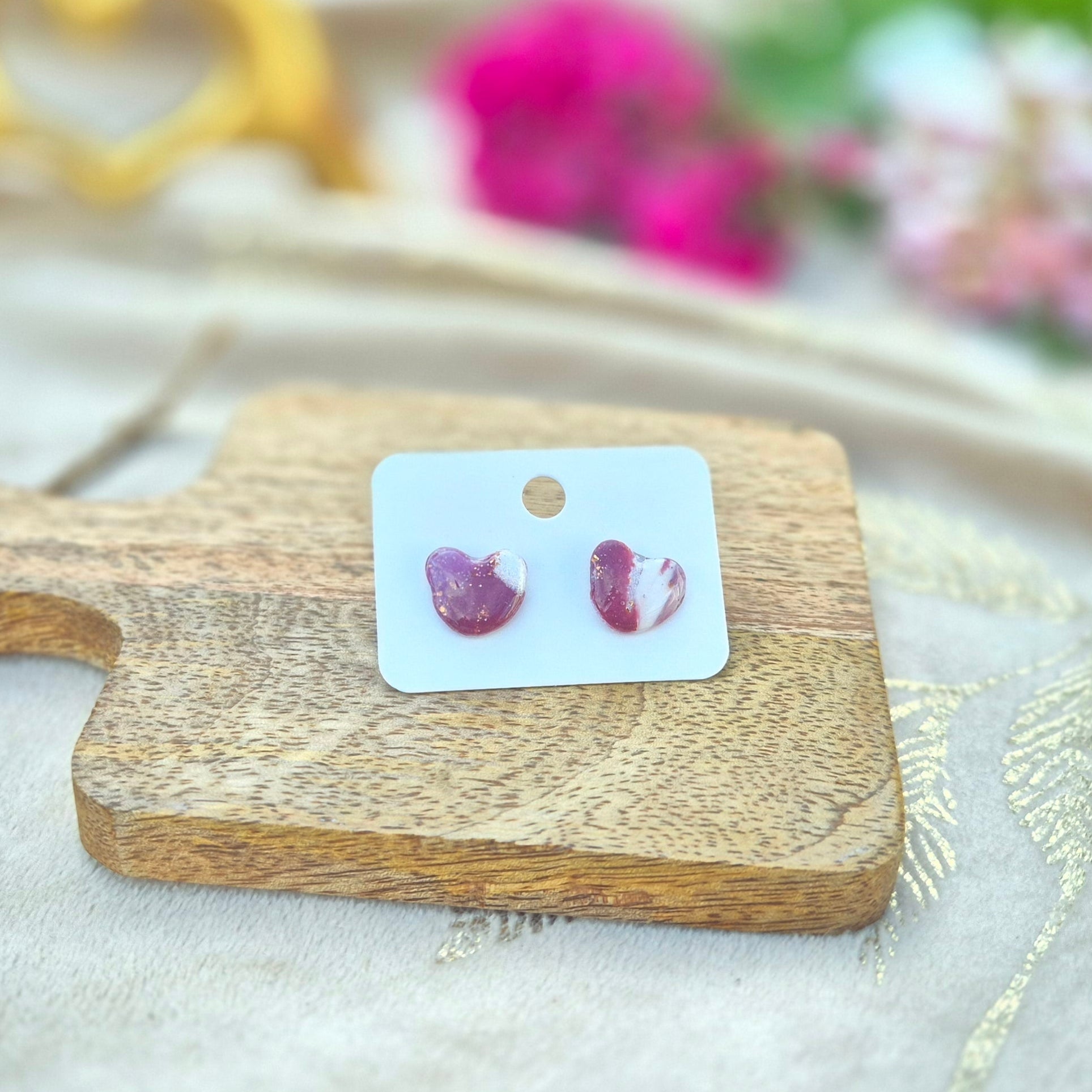 Prun'Or marie un cœur pourpre pailleté d’or à un blanc nacré, pour un bijou chic et sophistiqué qui capte la lumière.