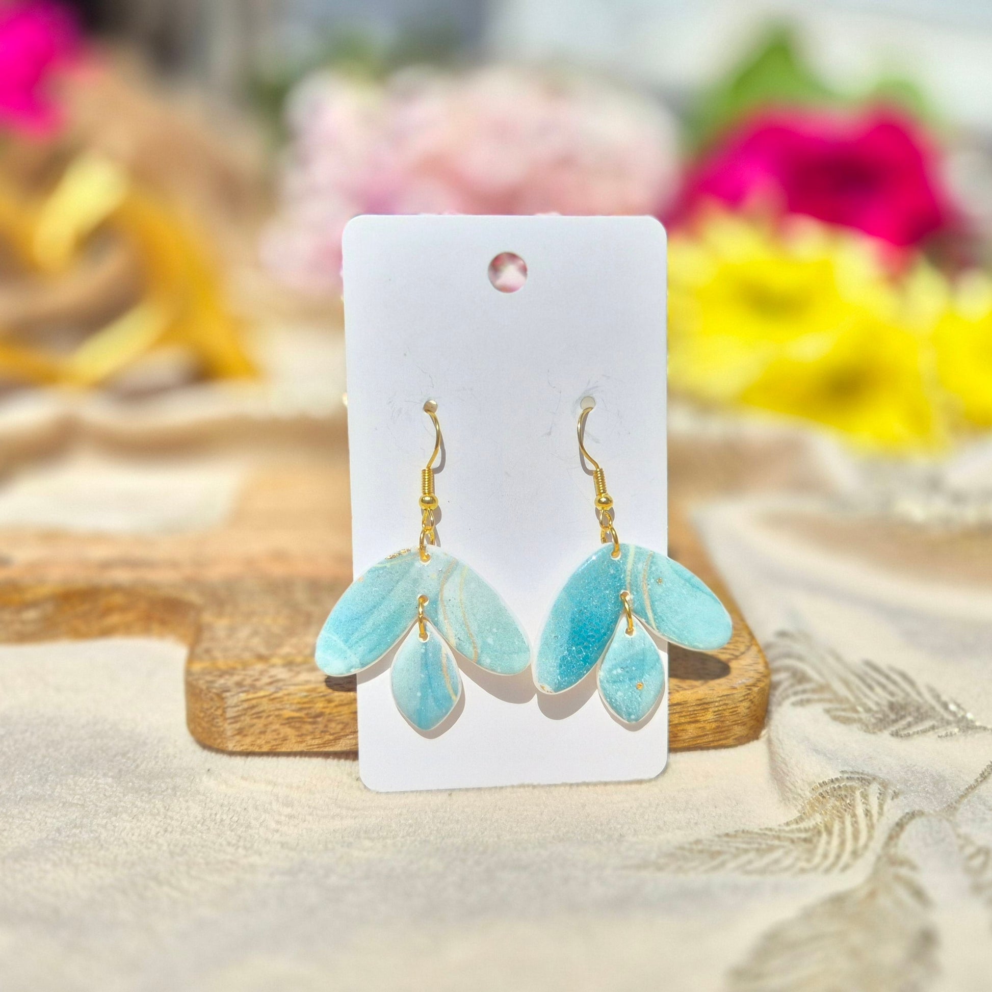 LunaLeaf dévoile toute la grâce de feuilles lunaires colorées dans un camaïeu de bleu-vert marbré, sublimé par de délicats filets dorés. Un bijou aérien et poétique, parfait pour apporter une touche de nature raffinée à vos tenues du quotidien ou de soirée.