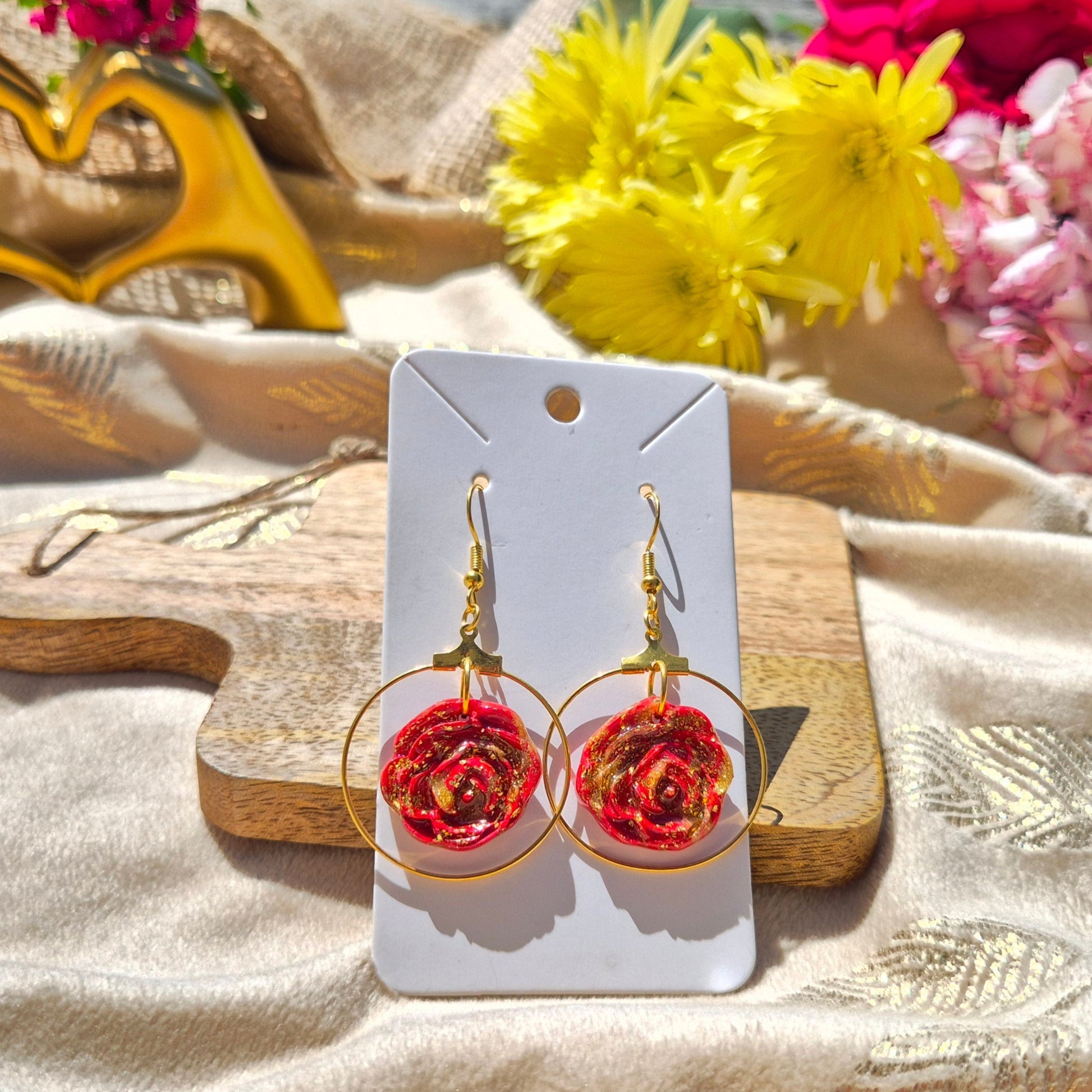 Un bijou sculpté en forme de rose rouge profonde, rehaussé d’éclats dorés et délicatement encadré d’un anneau doré fin. Idéal pour une touche romantique, chic et lumineuse au quotidien.