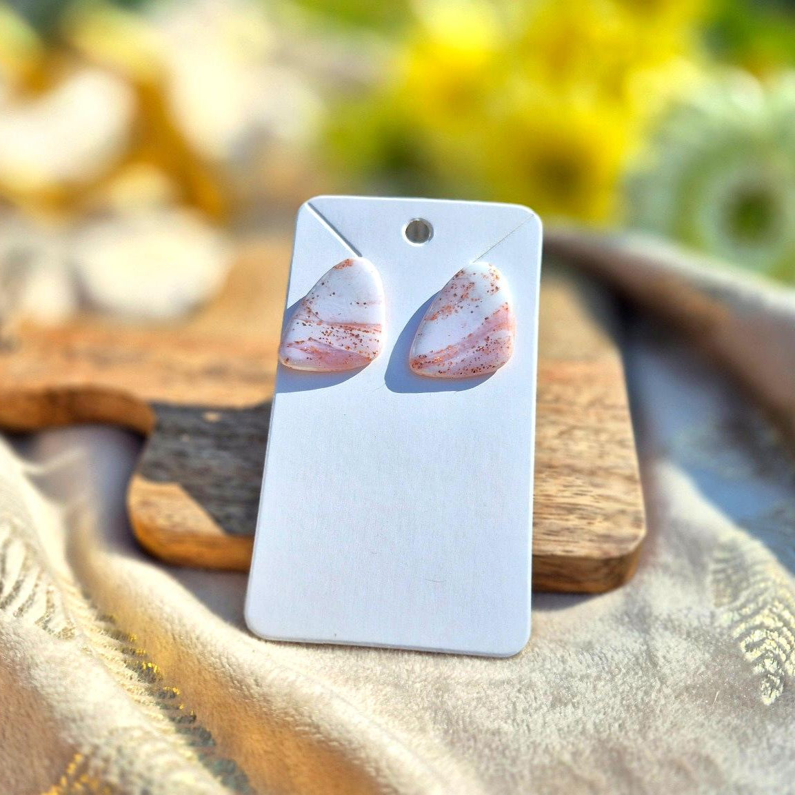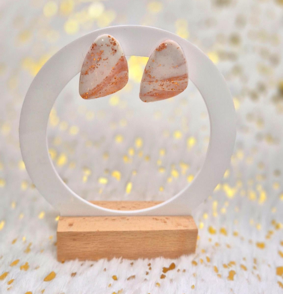 Une paire élégante aux reflets rose quartz et éclats cuivrés, parfaite pour un look doux et raffiné.