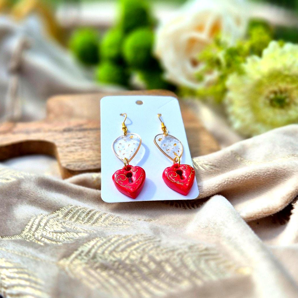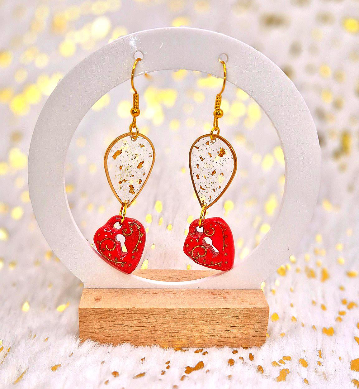 Secret du Cœur marie une délicate serrure dorée à un cœur laqué rouge rubis, pour un bijou mystérieux et précieux, gardien de vos émotions les plus secrètes.