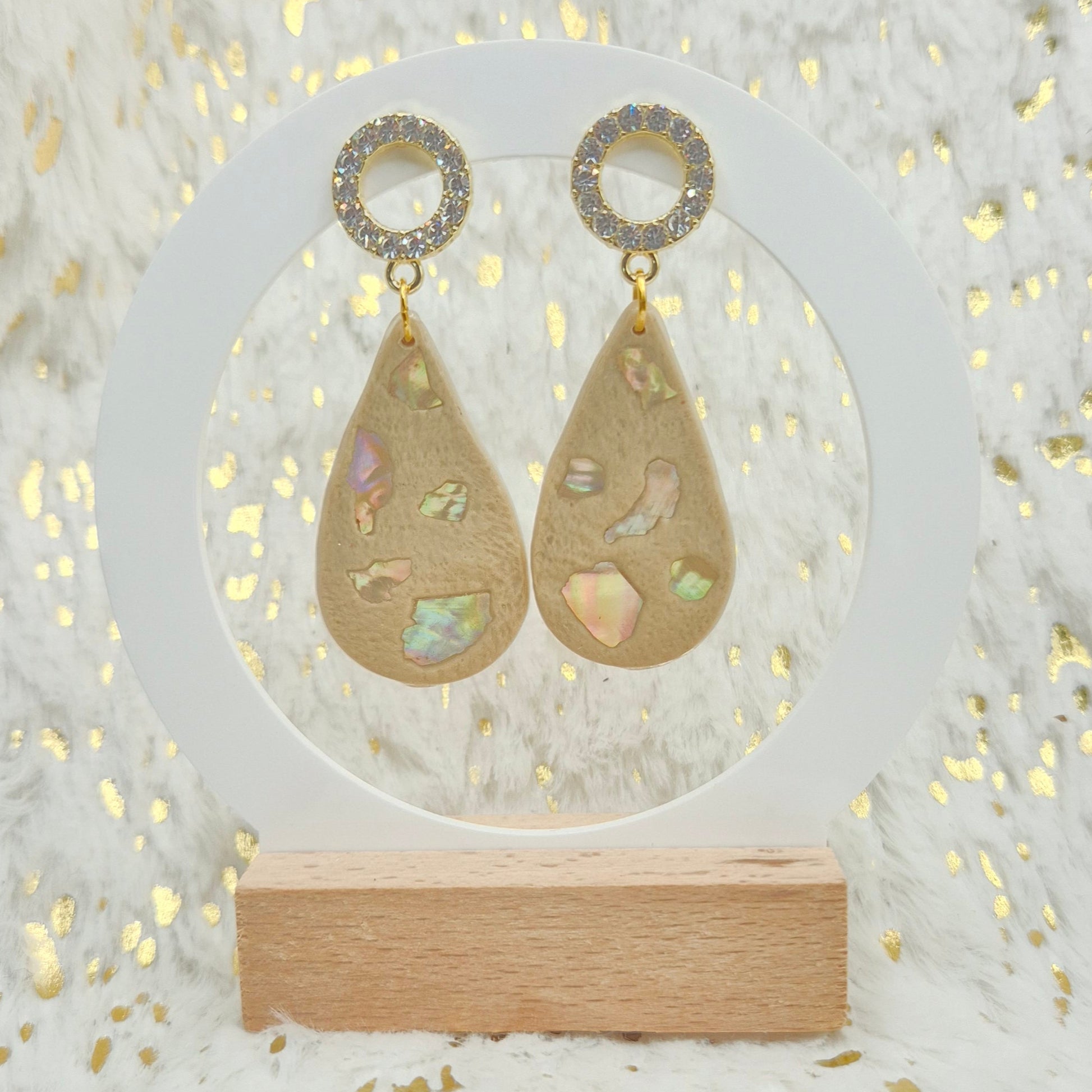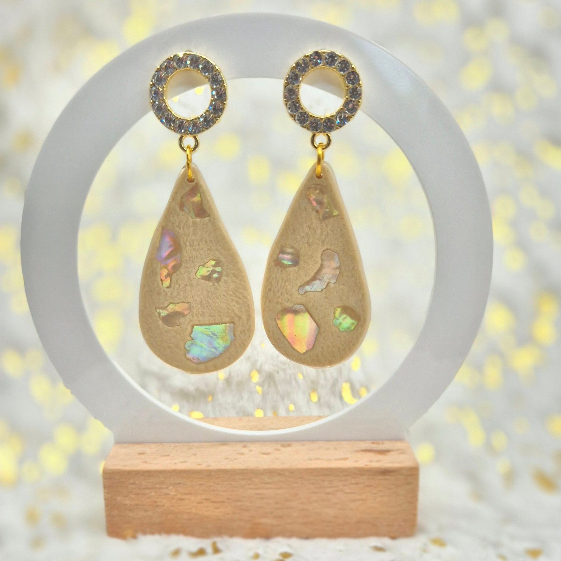 Chaque création est unique : l’aspect des éclats nacrés peut légèrement varier d’une paire à l’autre.