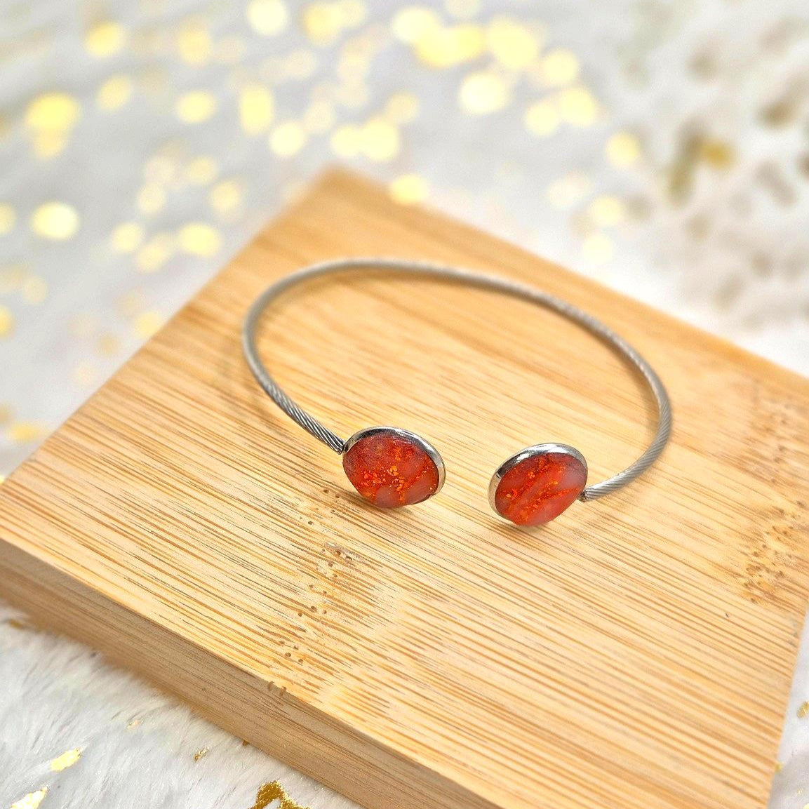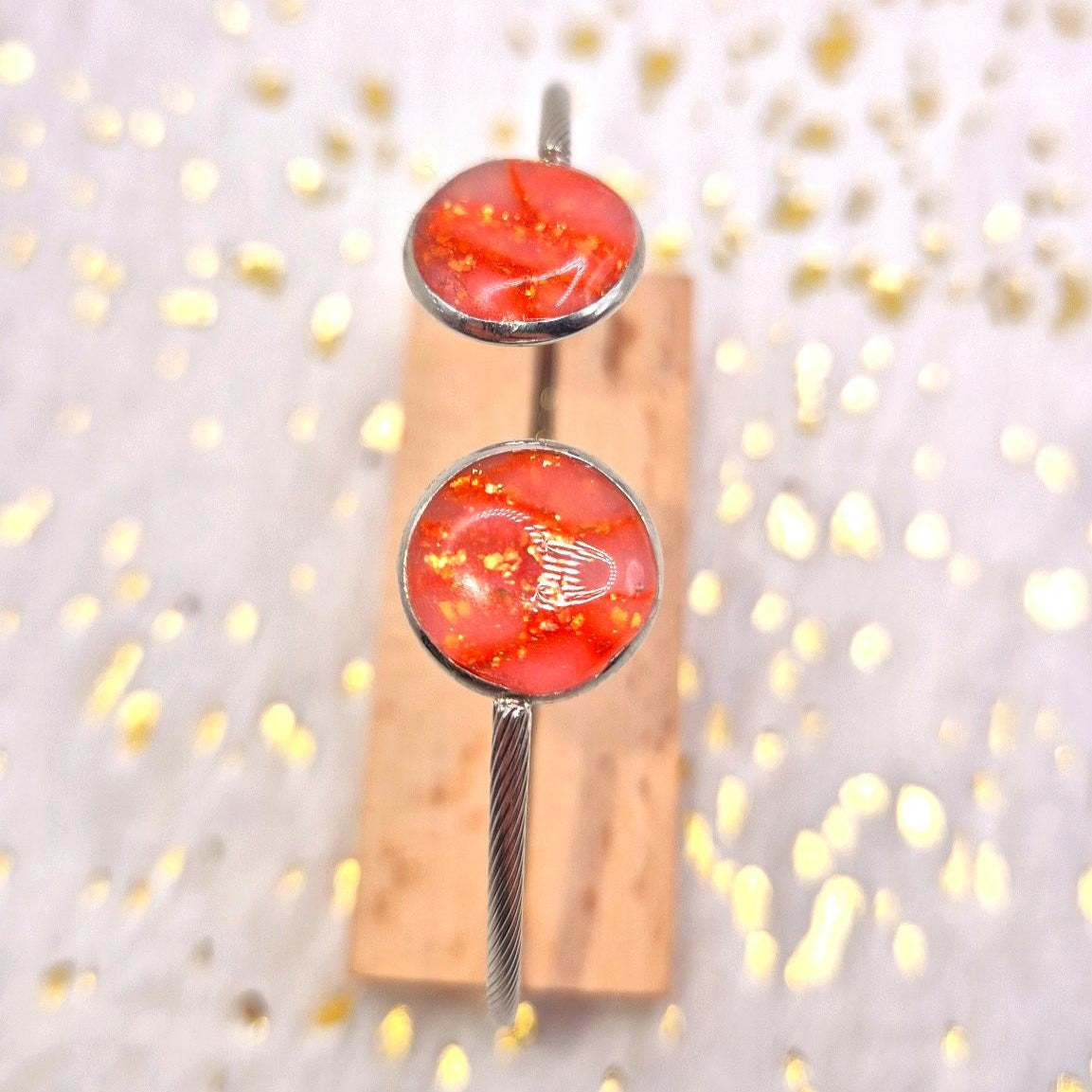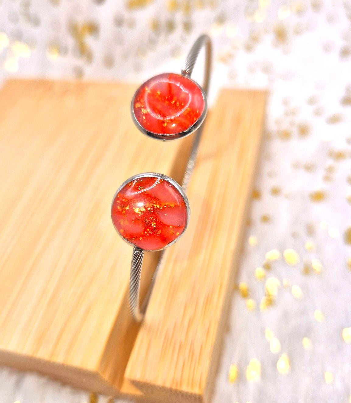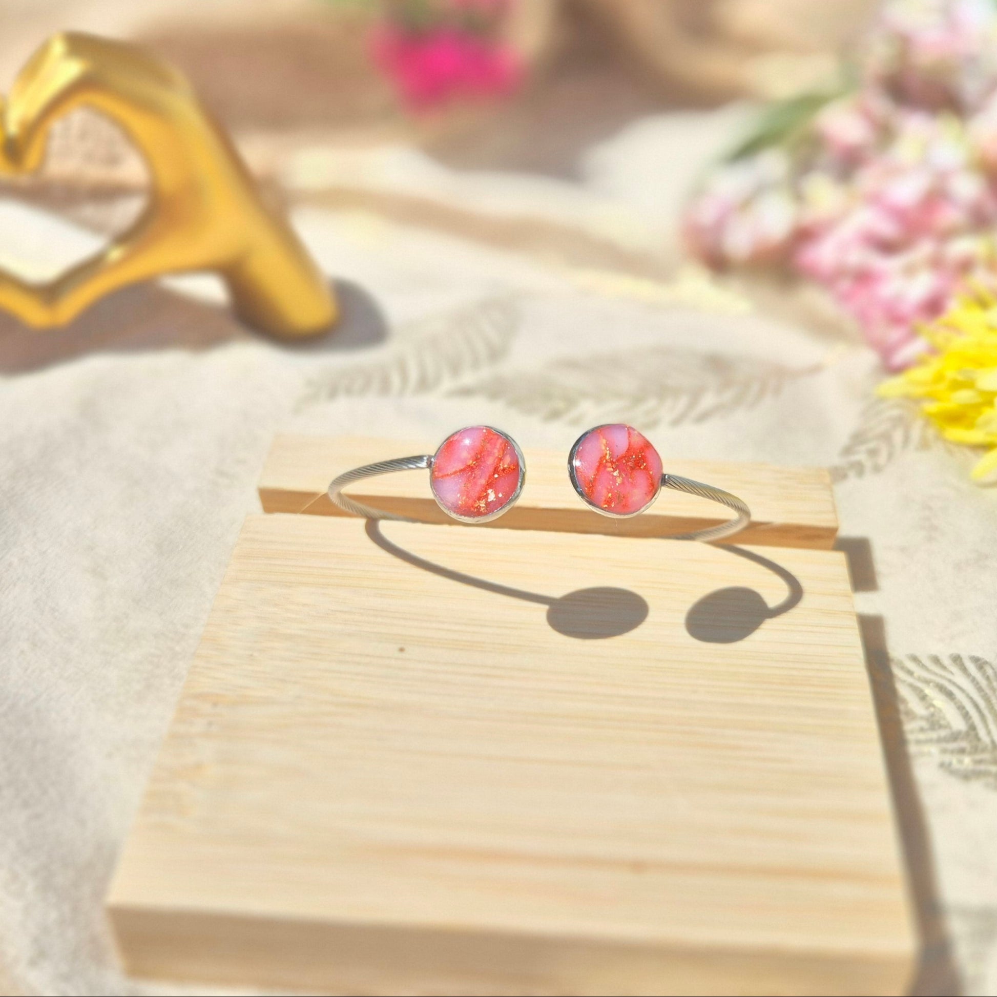 Un bracelet qui capte la lumière et l’attention : Solenza marie éclats dorés et reflets corails profonds, dans une forme à la fois moderne et intemporelle. Ce bijou sublimera un look casual chic, une tenue d’été ou une robe de soirée.
