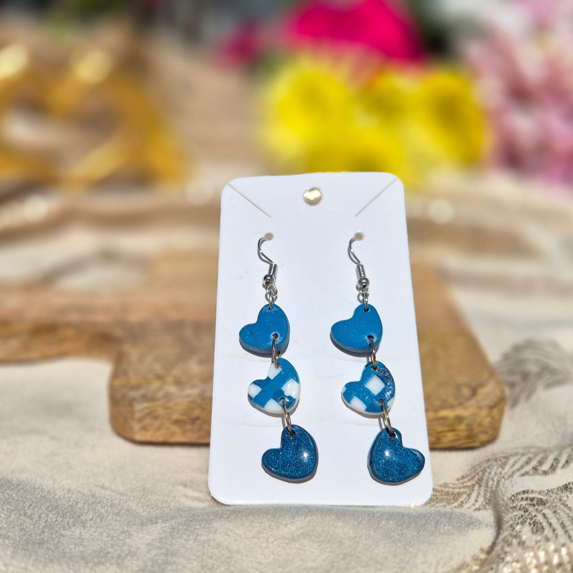 Un souffle de tendresse géométrique : Trame de Cœur, une cascade de cœurs bleus ponctuée de motifs tissés pour un style à la fois tendre et graphique. Une pièce originale, légère et pleine de charme.