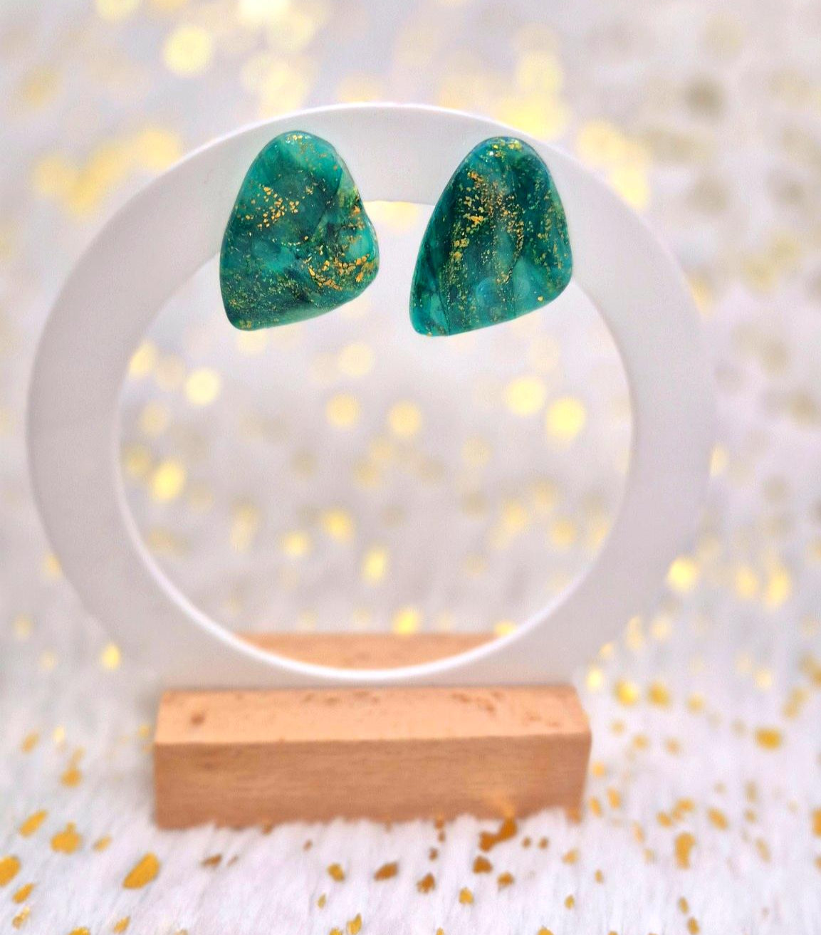 - Finition : marbré émeraude avec éclats de feuille d’or - Résine pour un rendu brillant et robuste