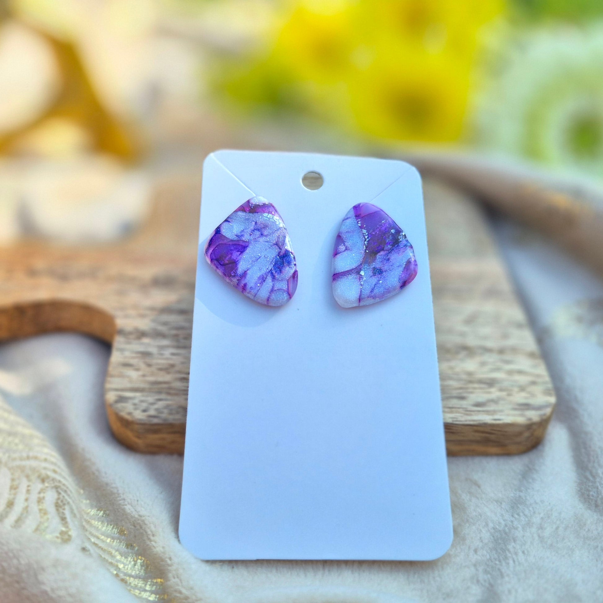 VioLuxe marie un marbré violet profond, du blanc nacré et des éclats argentés pour un effet scintillant et mystérieux. Une paire avant-gardiste qui capte la lumière et sublime toutes vos tenues.