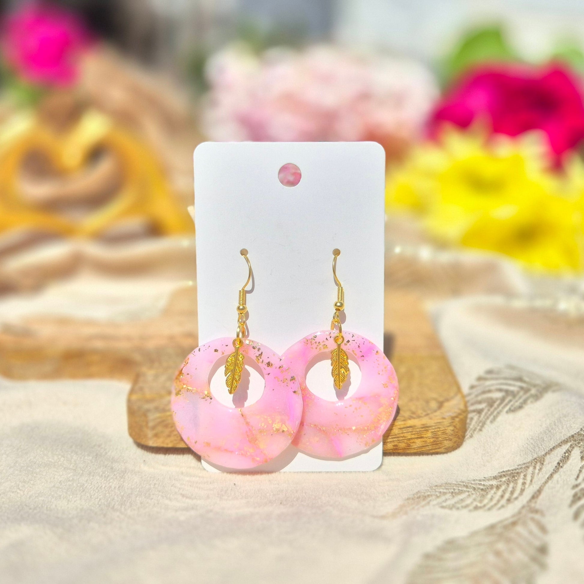 Voile de Plume dévoile un anneau ajouré rose translucide, rehaussé d’or, magnifié par une plume centrale pour un bijou aérien et raffiné.